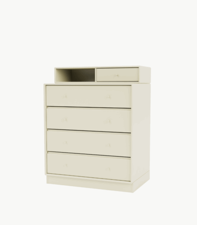 Oppbevar smykker og andre kjære eiendeler i den vakre kommoden KEEP – den perfekte oppbevaringsløsningen for soverom, stue eller entré. KEEP består av en modul med fire skuffer og en mindre modul med én skuff og en åpen hylle.
