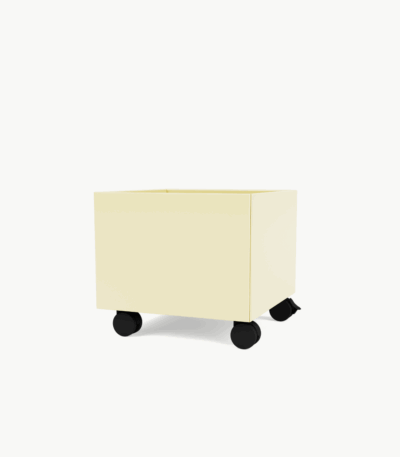 Med mål på 35 cm bredde, 35 cm dybde og 31,2 cm høyde inkludert hjul, passer Mini Play Box like godt alene som sammen med andre Montana Mini-moduler – for en helhetlig og praktisk oppbevaringsløsning på barnerommet.