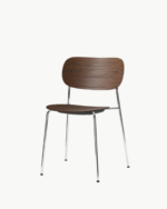 Co Dining Chair er en allsidig stol designet for både spise- og arbeidsområder, med en elegant krombase og skulpturelle finérdetaljer. Den kombinerer komfort, bevegelighet og stilren design.