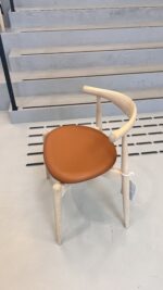 Stolens karakteristiske dampbøyde ryggstøtte i ett stykke massivt tre gir naturlig støtte til albuer og korsrygg, samtidig som konstruksjonen gjør det mulig å sitte i flere komfortable stillinger. Den elegante sargkonstruksjonen under setet i formpresset finér sikrer stabilitet, samtidig som stolens uttrykk oppleves lett og svevende.