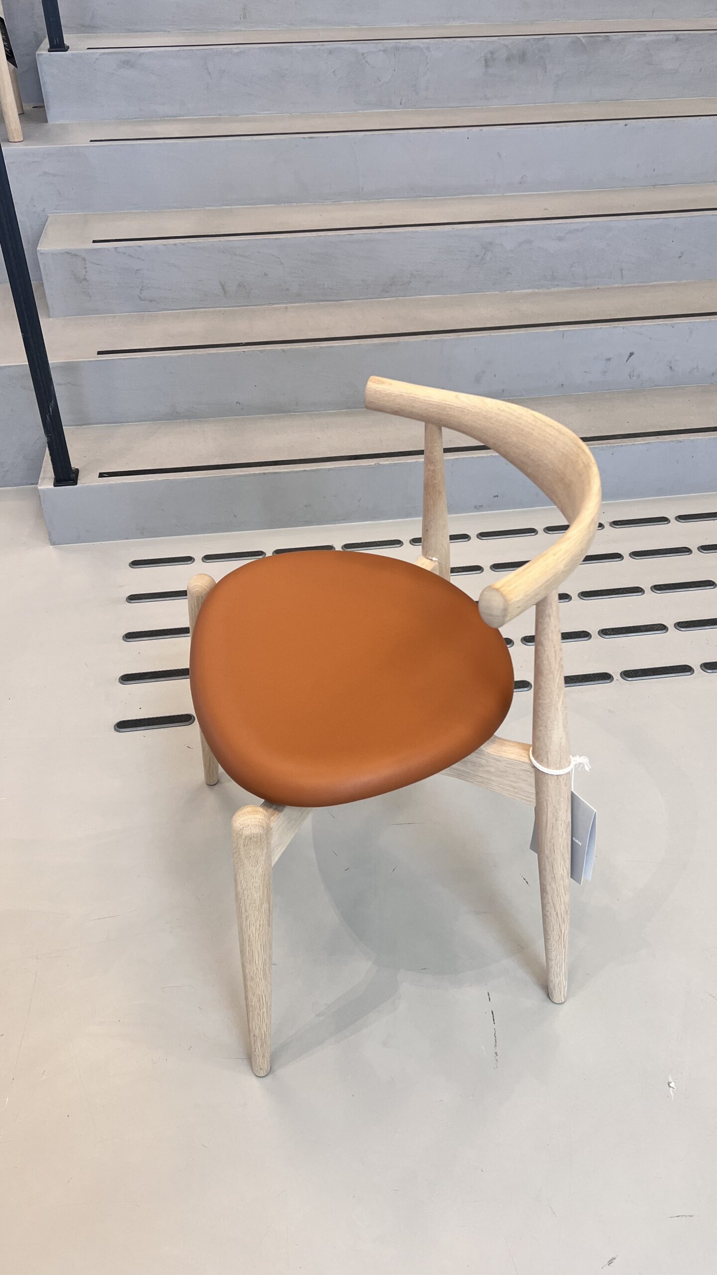 CH20 Elbow Chair fra Carl Hansen & Søn, designet av Hans J. Wegner, er en moderne klassiker som kombinerer ikonisk formspråk med maksimal komfort. Denne utstillingsmodellen har ramme i såpet eik og sete/rygg polstret i Cognac Thor-lær, som gir et varmt og eksklusivt uttrykk.