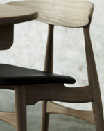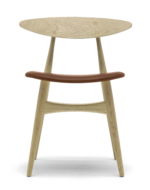 CH33P stolens buede sete ser ut til å flyte separat og er ideelt for polstring. Setet kan være polstret i en rekke fargede stoffer eller fint skinn. CH33T er også tilgjengelig i ulike typer naturlig treblandinger.