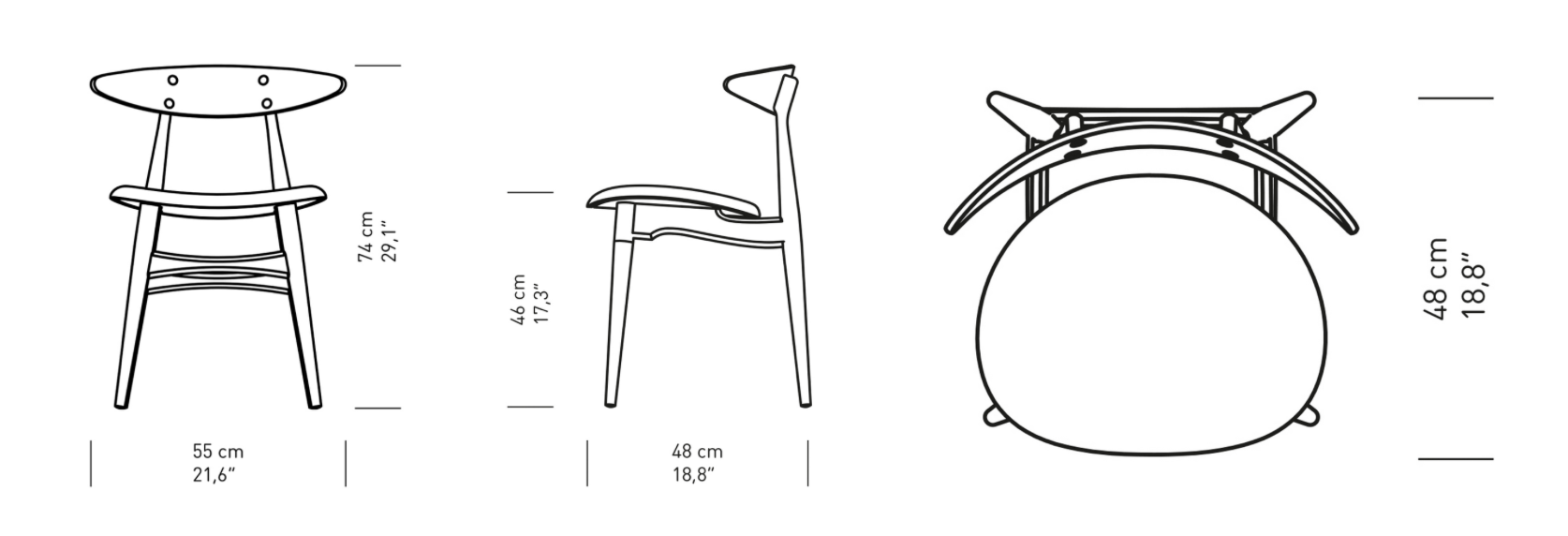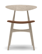 CH33P stolens buede sete ser ut til å flyte separat og er ideelt for polstring. Setet kan være polstret i en rekke fargede stoffer eller fint skinn. CH33T er også tilgjengelig i ulike typer naturlig treblandinger.