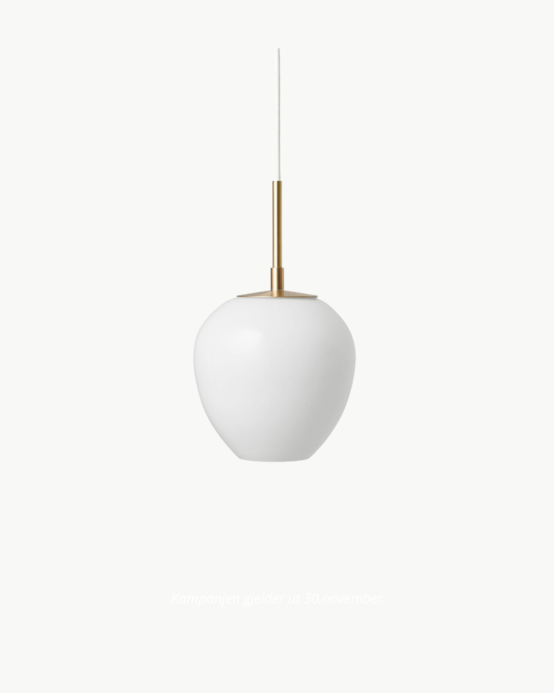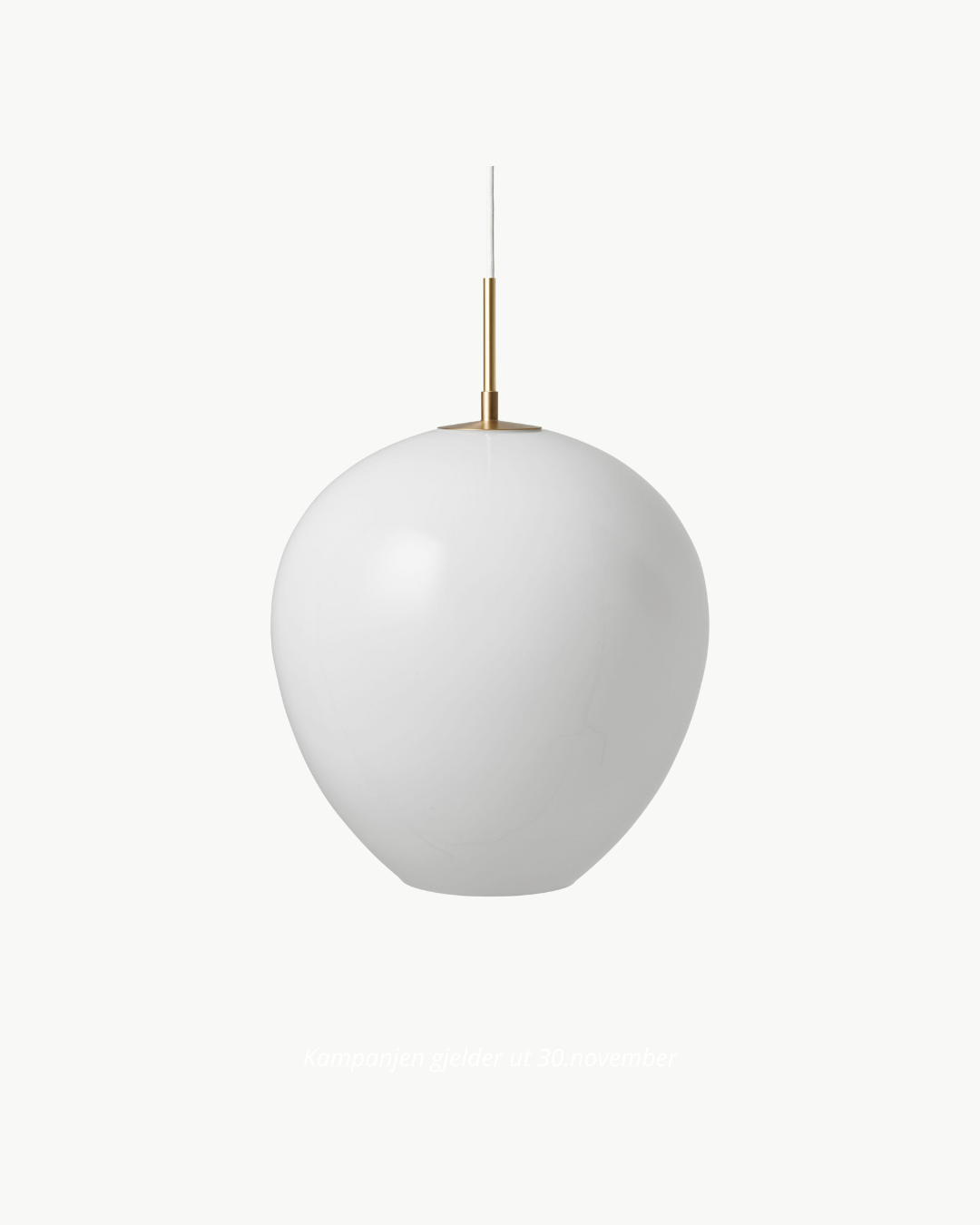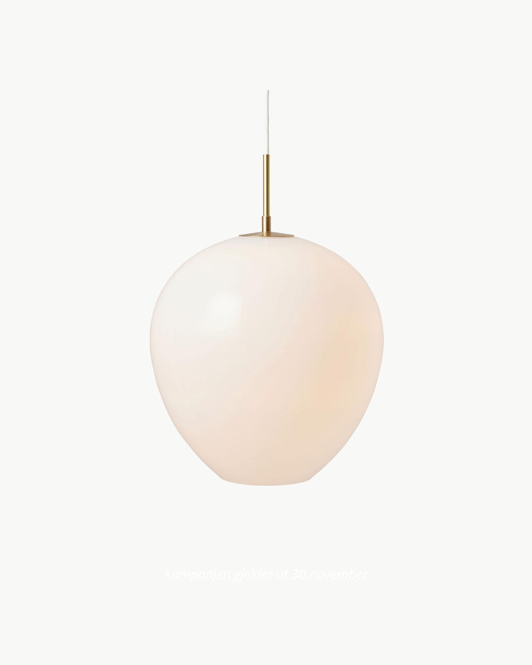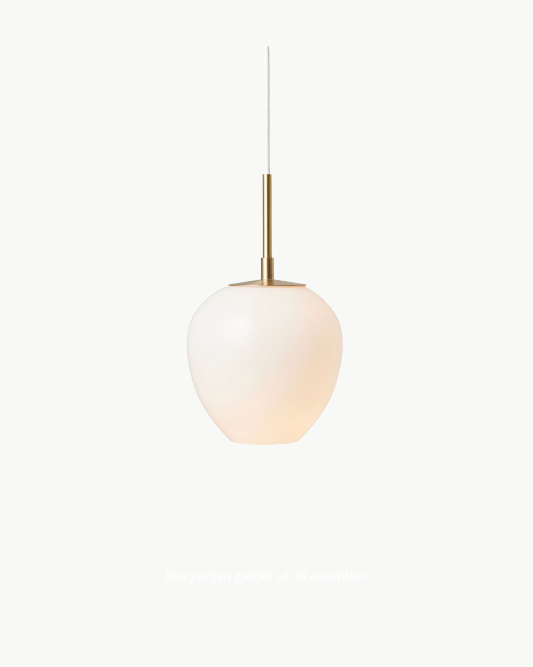 Lampen har en skjerm i tre lag munnblåst, glansfullt hvitt opalglass, inspirert av den myke formen til en tulipan. Resultatet er et blendingsfritt og behagelig, stemningsskapende lys som passer perfekt over spisebord, i stuen, entreen eller andre rom der du ønsker et sofistikert uttrykk.
