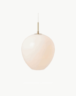 Den solide opphenget i massivt messing er presist utformet og smelter sømløst sammen med glasskjermen for å skape en harmonisk og organisk helhet.