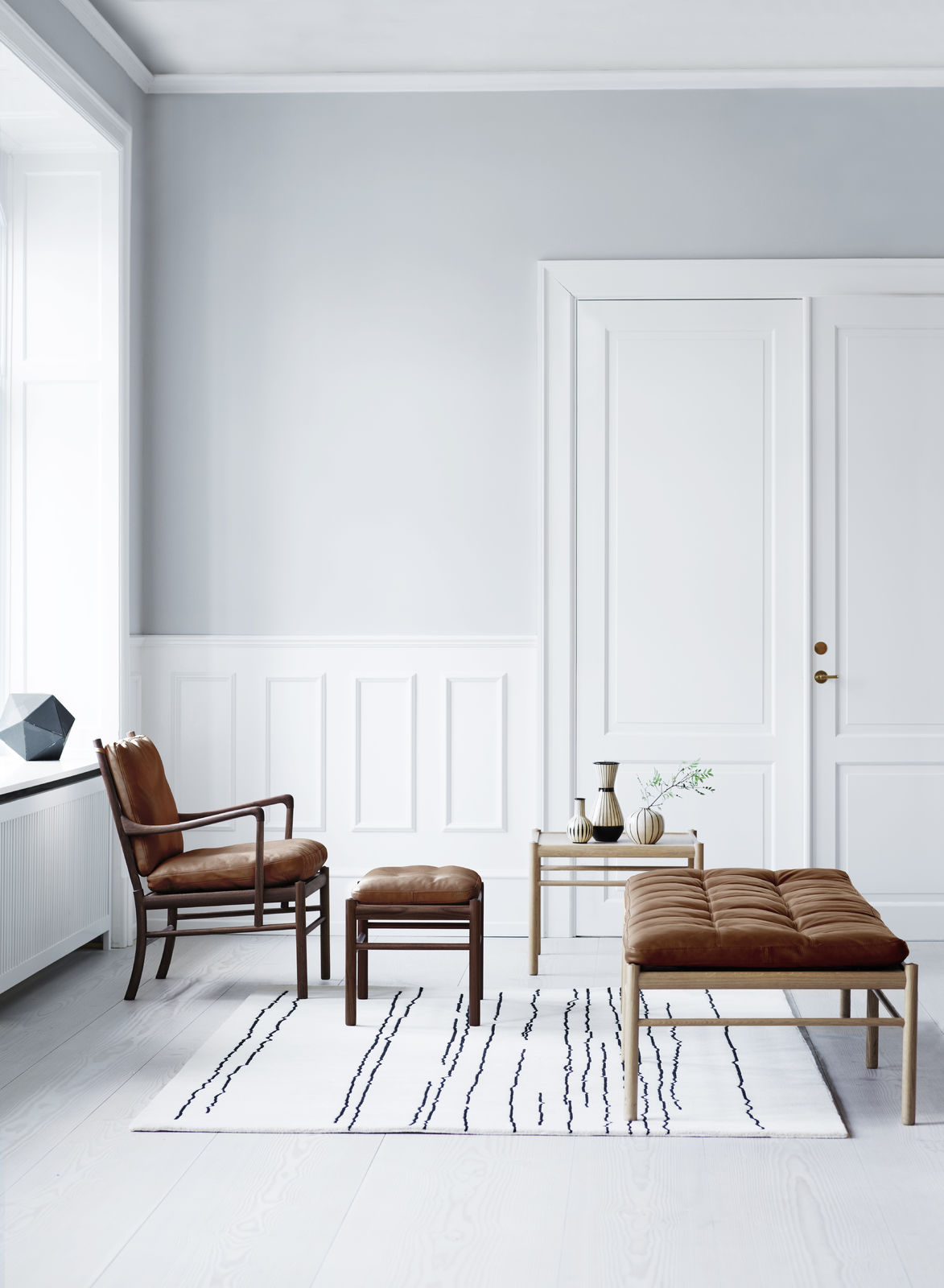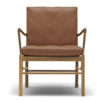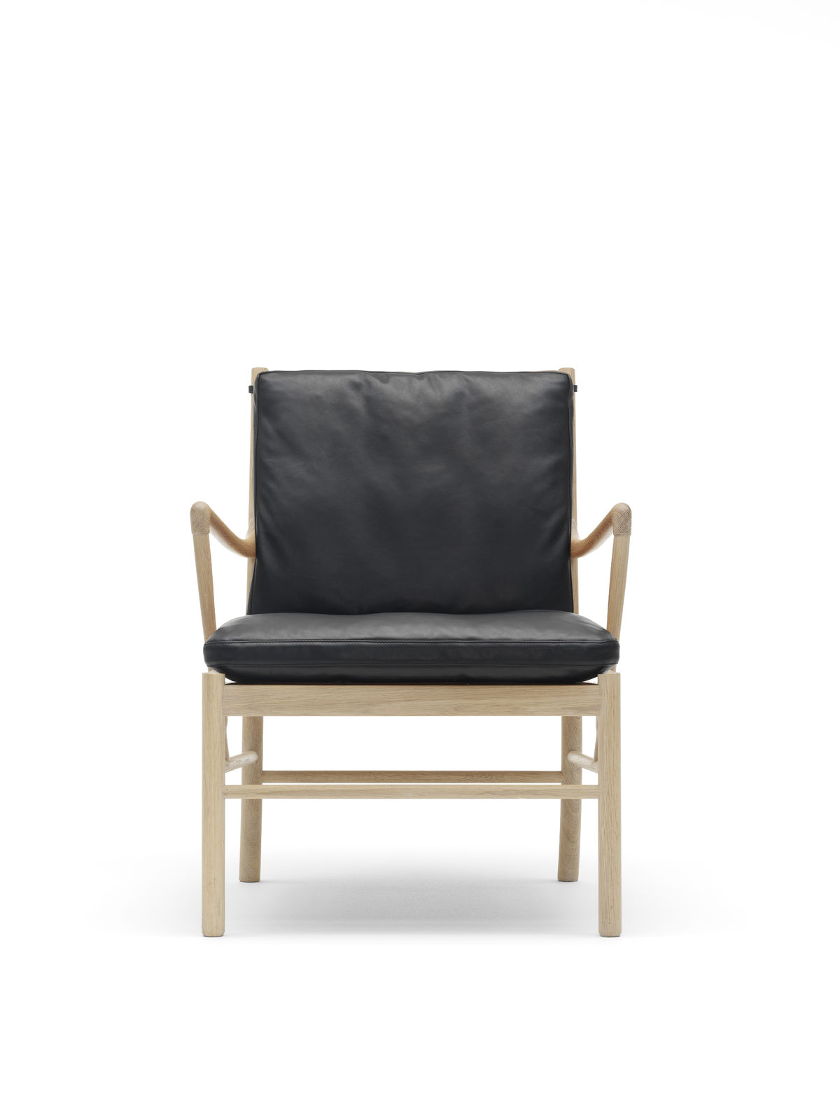Femten år senere, ville Wanscher utforme den tilsvarende Colonial Sofa og Colonial Coffee Table, skape Colonial Series. Colonial Chair er tilgjengelig med matchende OW149F fotskammel for ekstra komfort.