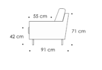 Total dybde (ramme): 91 cm · Sittehøyde: 55 cm