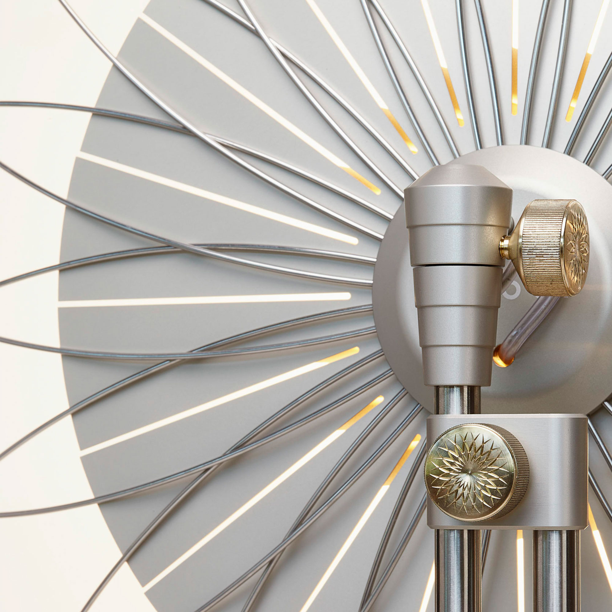 Filigree ble designet av Rick Tegelaar for Moooi i 2015 og er en gulvlampe med industriell påvirkning. Filigree er laget av rustfritt stål og aluminium med messingdetaljer og en gjennomsiktig polypropylen-skjerm. Lampeskjermen er dekorert med et mønster av metalltråder som tilfører en effektiv detalj til lysspredningen. Lampens høyde kan enkelt justeres med en skrue på stativet. Filigree leveres med en gjennomsiktig strømledning og integrert dimmerfunksjon.