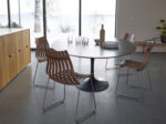 The compact and well-proportioned silhouette of both the seats and the small sofa, opens up to a new way of using the dining space.