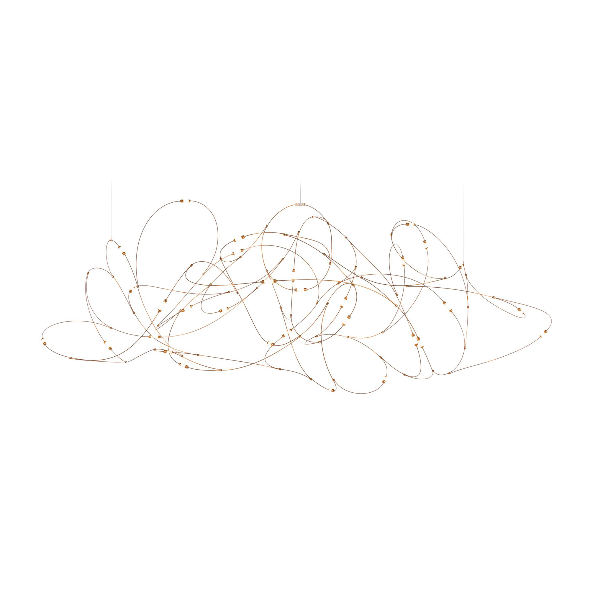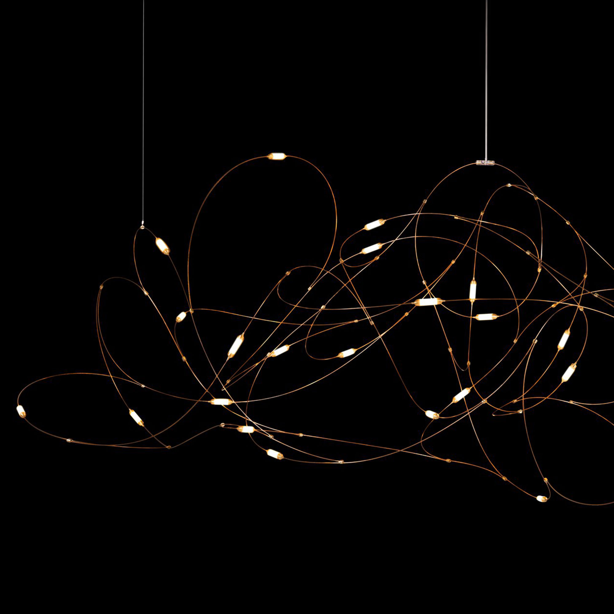 Flock of Light 31 er en taklysekrone fra merket Moooi designet av Studio Toer. Lampen består av messingkopper, bronsetråder og semi-transparent polykarbonat. Armaturets unike utseende gjør at designet kan gå fra lys og luftig om dagen til mer dramatisk når mørket faller på. Som navnet tilsier, består Flock of Light 31 av 31 lyskilder plassert på tynne bronsetråder. Opphenget er nesten usynlig, noe som bidrar til et svevende og kunstnerisk uttrykk. Flock of Light 31 passer perfekt over spiseområdet så vel som i stuen hvor lyset skinner. Lampen finnes også i de to mindre modellene Flock of Light 11 og Flock of Light 21. Moooi tilbyr en dimmer som passer til flere utvalgte modeller fra merket. Dimmeren kan bestilles separat hos oss.