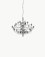 Med sine 30 lyspunkter gjør Flos 2097/30 et kraftfullt visuelt inntrykk og egner seg spesielt godt i rom med god takhøyde, som over spisebord, i trapperom, stuer eller representative offentlige miljøer. Lampen leveres med takfeste og rosett i stål for et helhetlig og gjennomført uttrykk.
