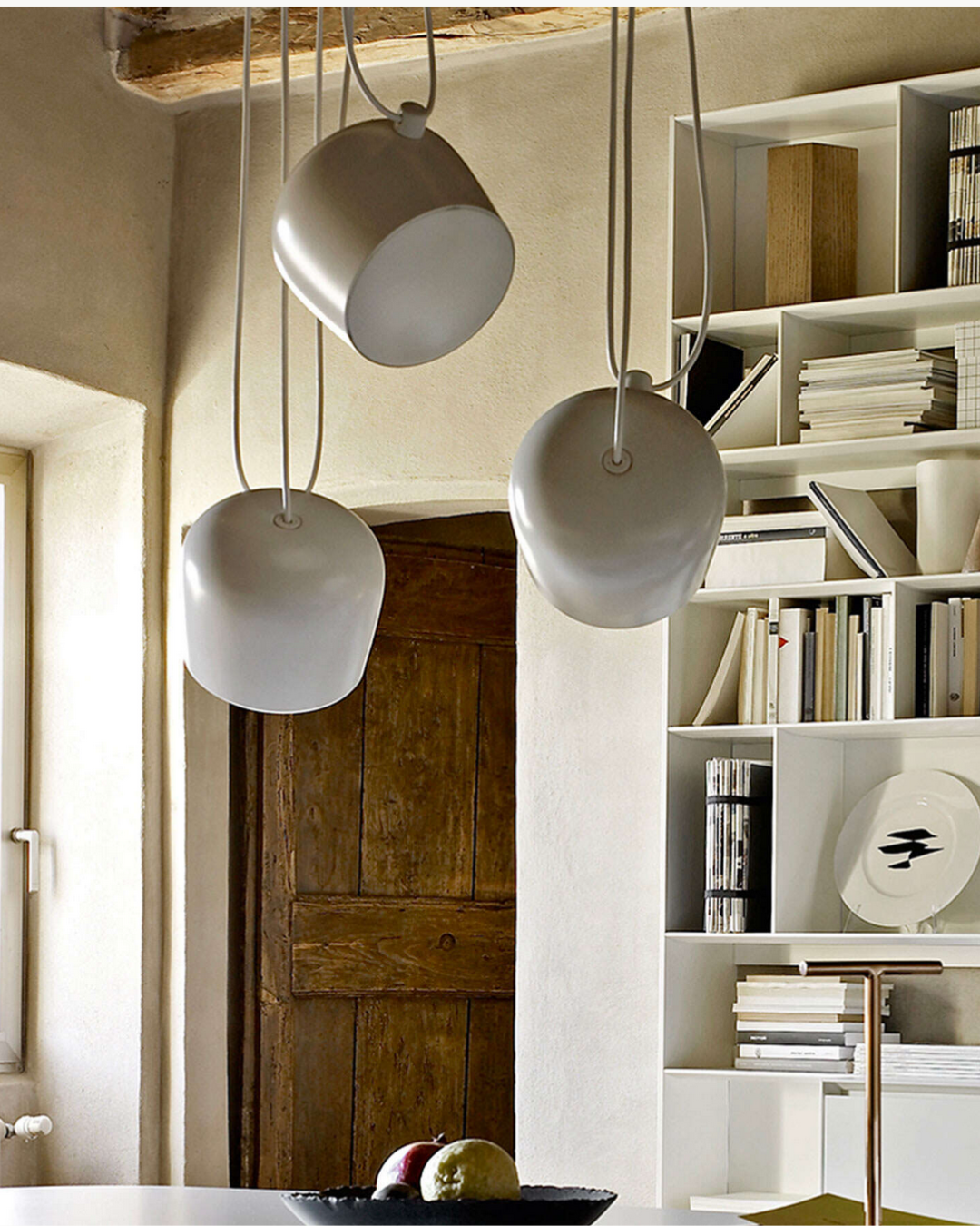 Vi selger Flos Aim Small i hvit som utstillingsmodell. Den elegante pendelen har et minimalistisk og fleksibelt uttrykk, der ledningen fungerer som en del av designet og gir frihet til å justere høyde og plassering.