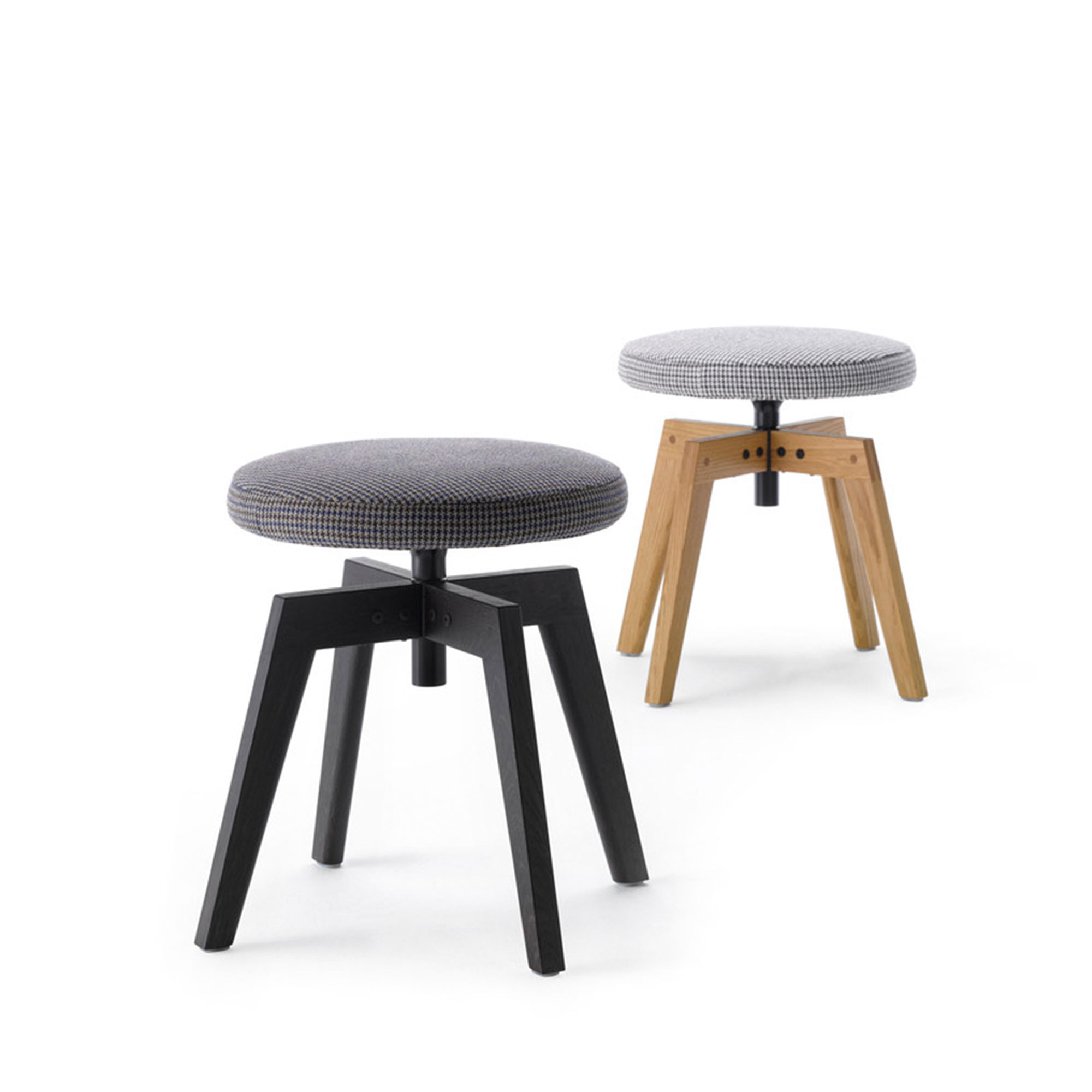 Flow Pouf er en av de minste krakkene fra Flow-serien fra MDF Italia, designet av Jean Marie Massaud i 2009. Flow Pouf er en videreutvikling av den ikoniske stolen Flow og ble lansert i 2014. Krakken er tilgjengelig i flere forskjellige design, her med et behagelig skumpolstret sete og understell med fire ben av eik. Velg mellom tre forskjellige overflatebehandlinger, naturlig oljet eik, lysbleket eik og mørk brunbeiset eik. Flow Pouf er tilgjengelig med møbeltrekk i et bredt utvalg av stoffer og skinn. Velg også midtfestet i hvitt eller grafittgrått.