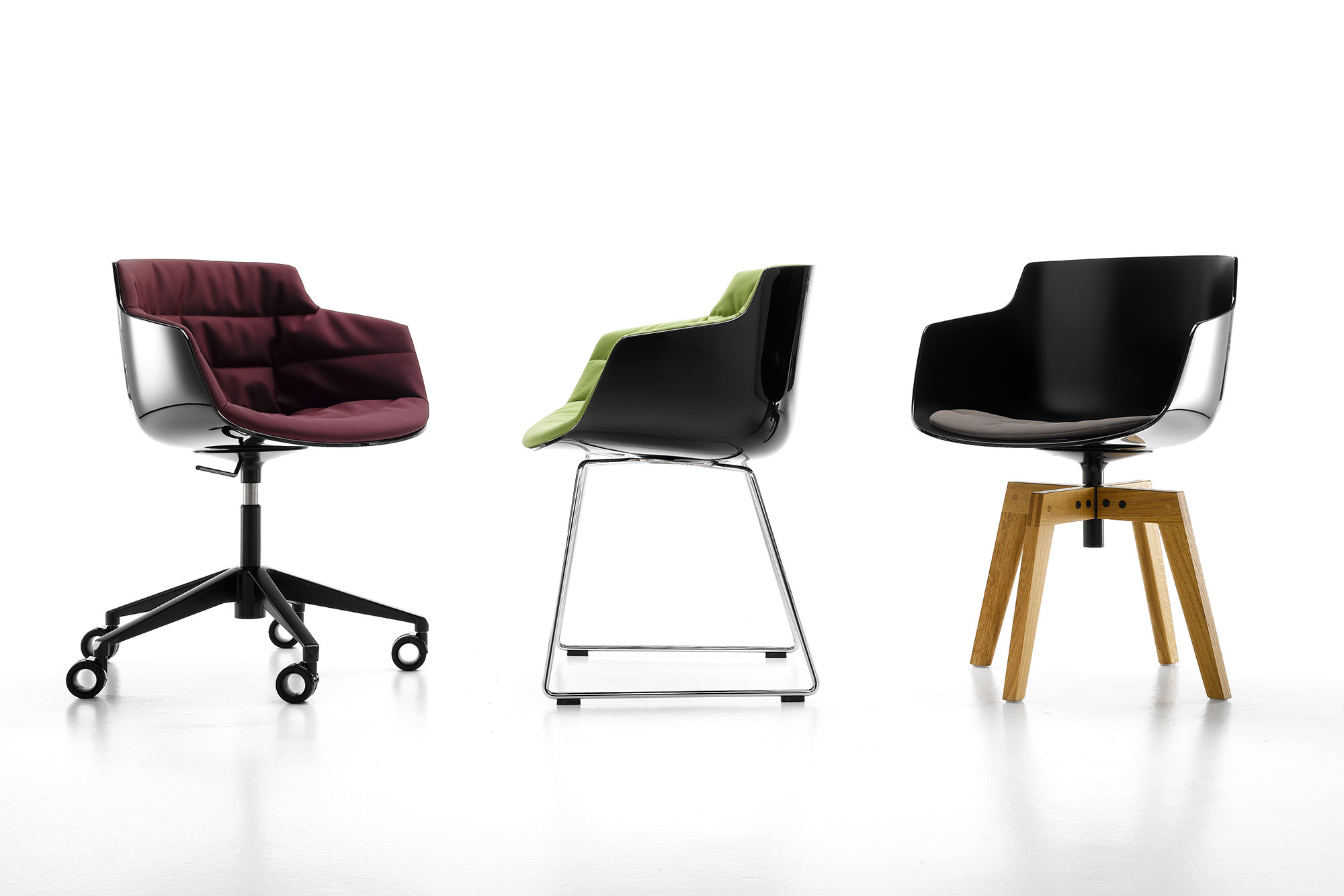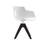 Denne varianten av Flow Slim Chair er en komfortabel karmstol med avkledd skall laget av polykarbonat som er tilgjengelig i hvitt eller svart med flere valgfrie understell. En polstret pute kan kjøpes med som tilbehør. Flow Slim Chair er en stol med en fantastisk personlighet, det avrundede skallet gjør den både behagelig å sitte i og vakker å se på, og stolen passer godt inn i mange typer miljøer, ved spisebord eller skrivebord.