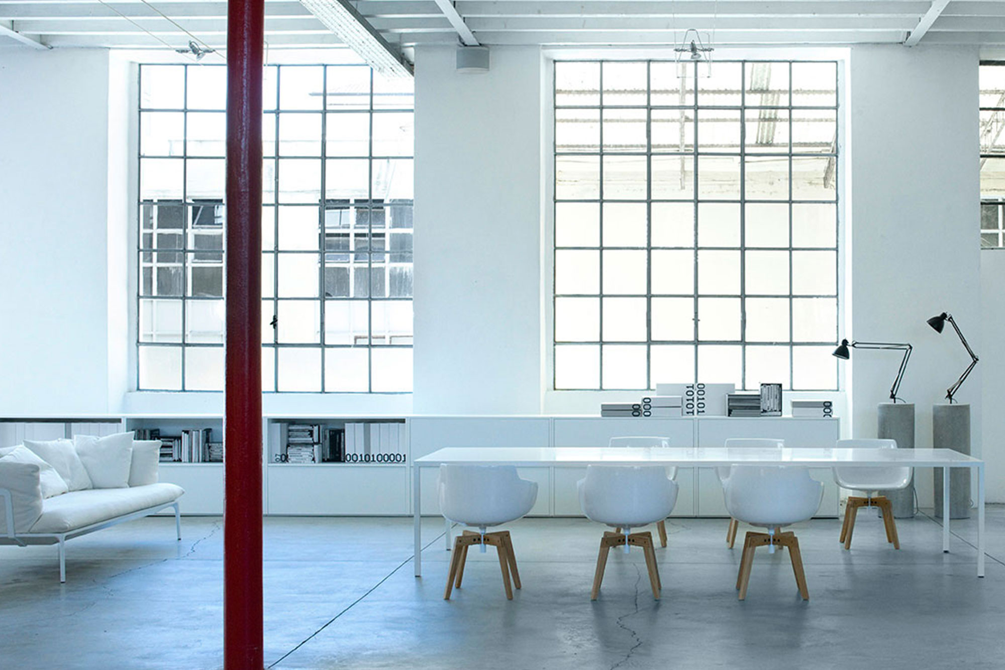 Jean Marie Massauds populære Flow Chair kommer her med armlener og eikebase Flow Slim Chair Oak Base. Massaud skapte stolserien Flow for MDF Italia i 2009, og siden har stolen blitt et ikonisk design som har blitt lansert i en rekke design.