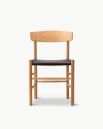 Med polstret sete – opprinnelig utviklet av Mogensen i 1969 – kombineres den klassiske funksjonaliteten med økt komfort. Trekket, i slitesterkt canvas eller eksklusivt skinn, kan enkelt tas av og hviler på en lett polstret base som gir ekstra sittekomfort.