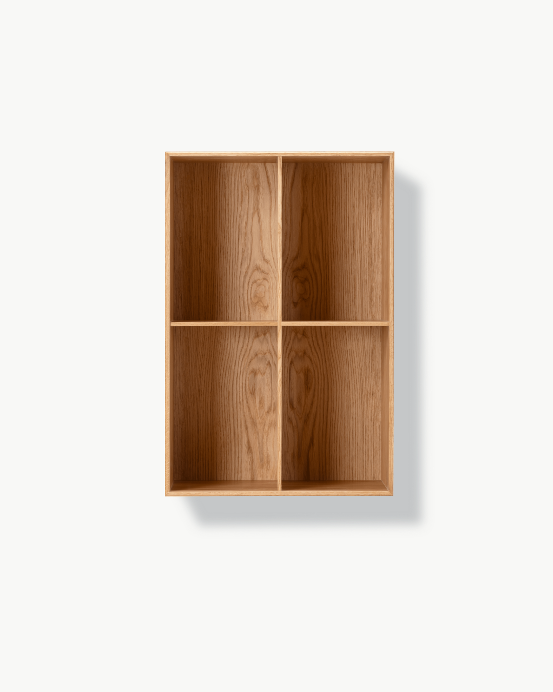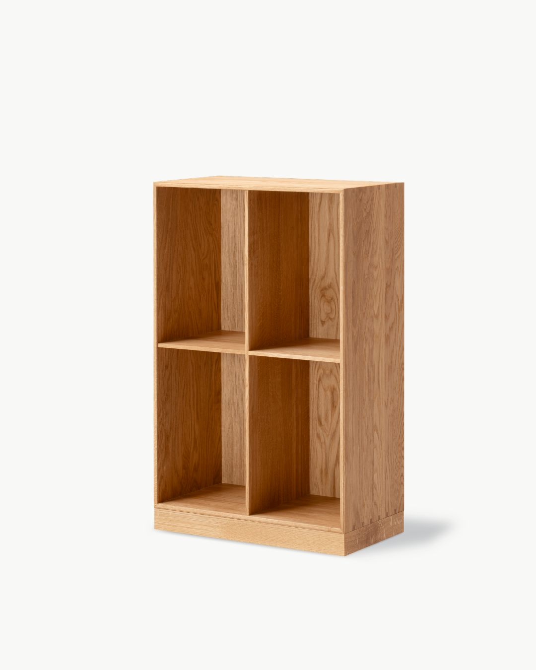 Bokhylle i heltre, konstruert med svalehaleskjøter og bakplate i finér. Leveres enten med sokkel eller til veggmontering. Messingskruer for veggmontering og sikring medfølger. Merk at plugger eller andre typer skruer ikke er inkludert, da dette avhenger av veggtype. |