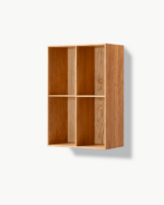Reolen er laget i heltre og konstruert med tradisjonelle svalehaleskjøter, som gir både styrke og et raffinert uttrykk. Bakplaten er i finér, noe som skaper en stabil og elegant helhet. MK55 kan leveres enten med sokkel eller for veggmontering, slik at den enkelt kan tilpasses ulike rom og behov – perfekt som bokhylle i stue, kontor eller bibliotek.