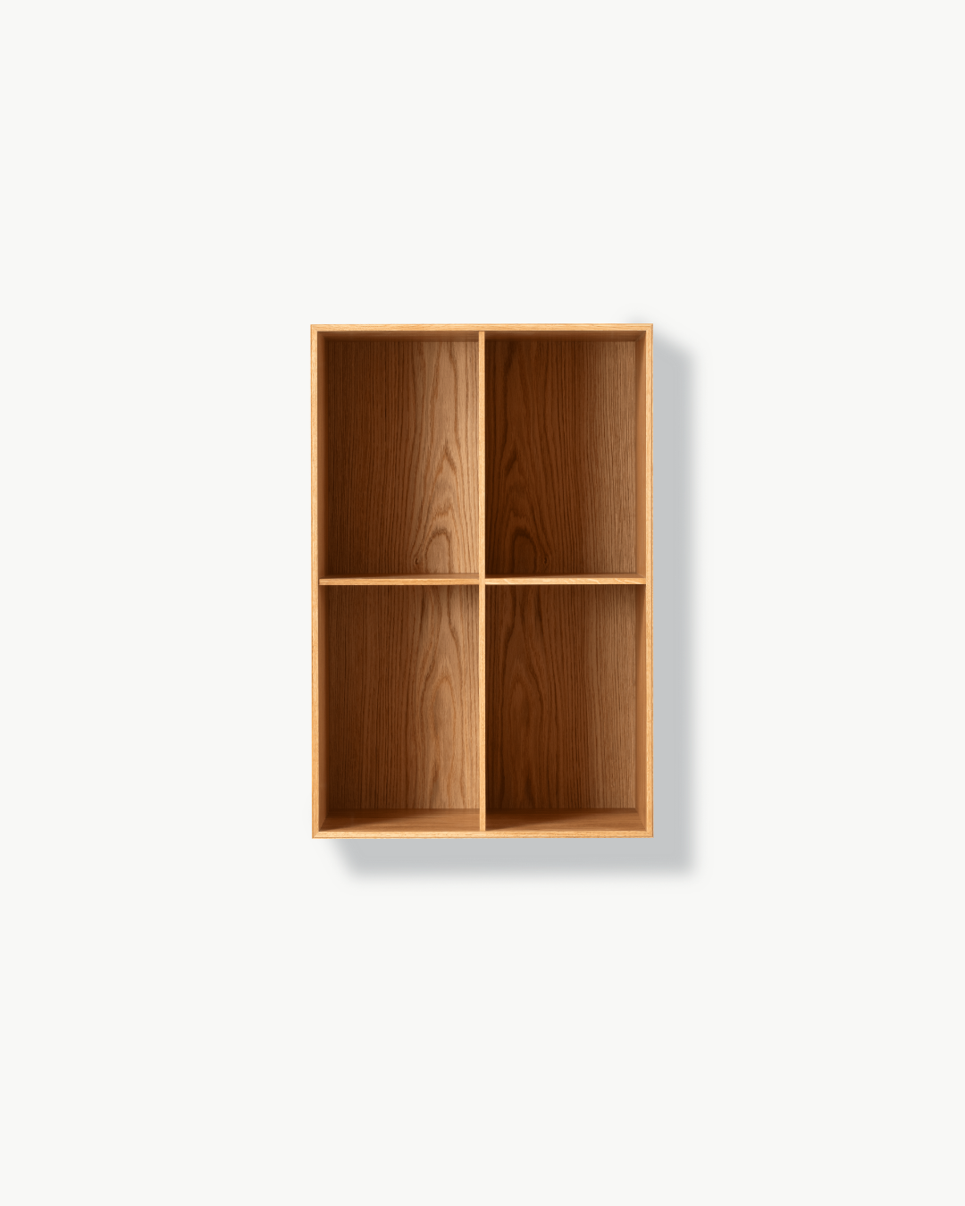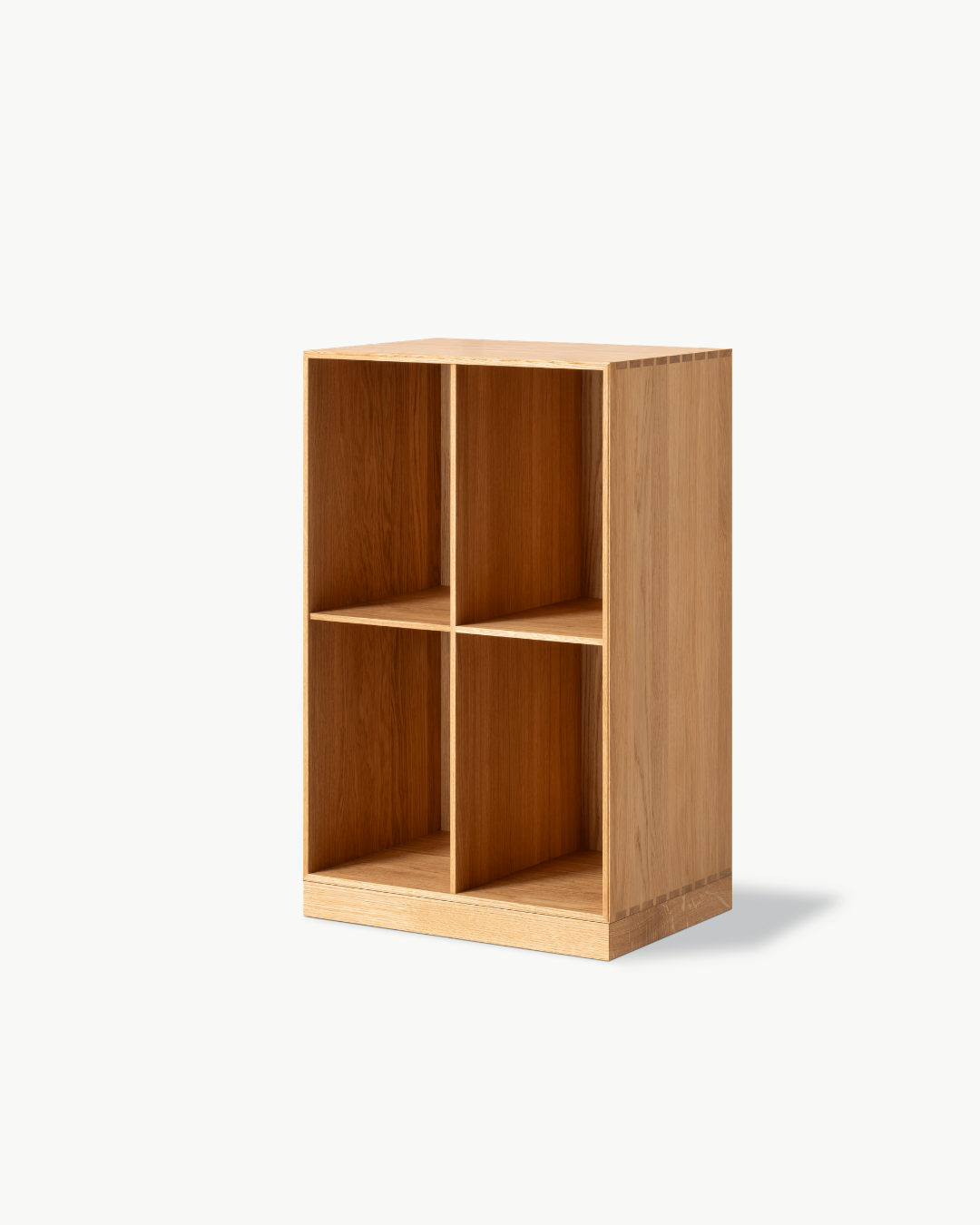 Bokhylle i heltre, konstruert med svalehaleskjøter og bakplate i finér. Leveres enten med sokkel eller til veggmontering. Messingskruer for veggmontering og sikring medfølger. Merk at plugger eller andre typer skruer ikke er inkludert, da dette avhenger av veggtype. |