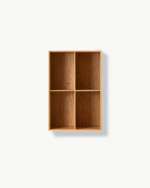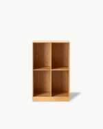 Reolen er laget i heltre og konstruert med tradisjonelle svalehaleskjøter, som gir både styrke og et raffinert uttrykk. Bakplaten er i finér, noe som skaper en stabil og elegant helhet. MK67 kan leveres enten med sokkel eller for veggmontering, slik at den enkelt kan tilpasses ulike rom og behov – perfekt som bokhylle i stue, kontor eller bibliotek.