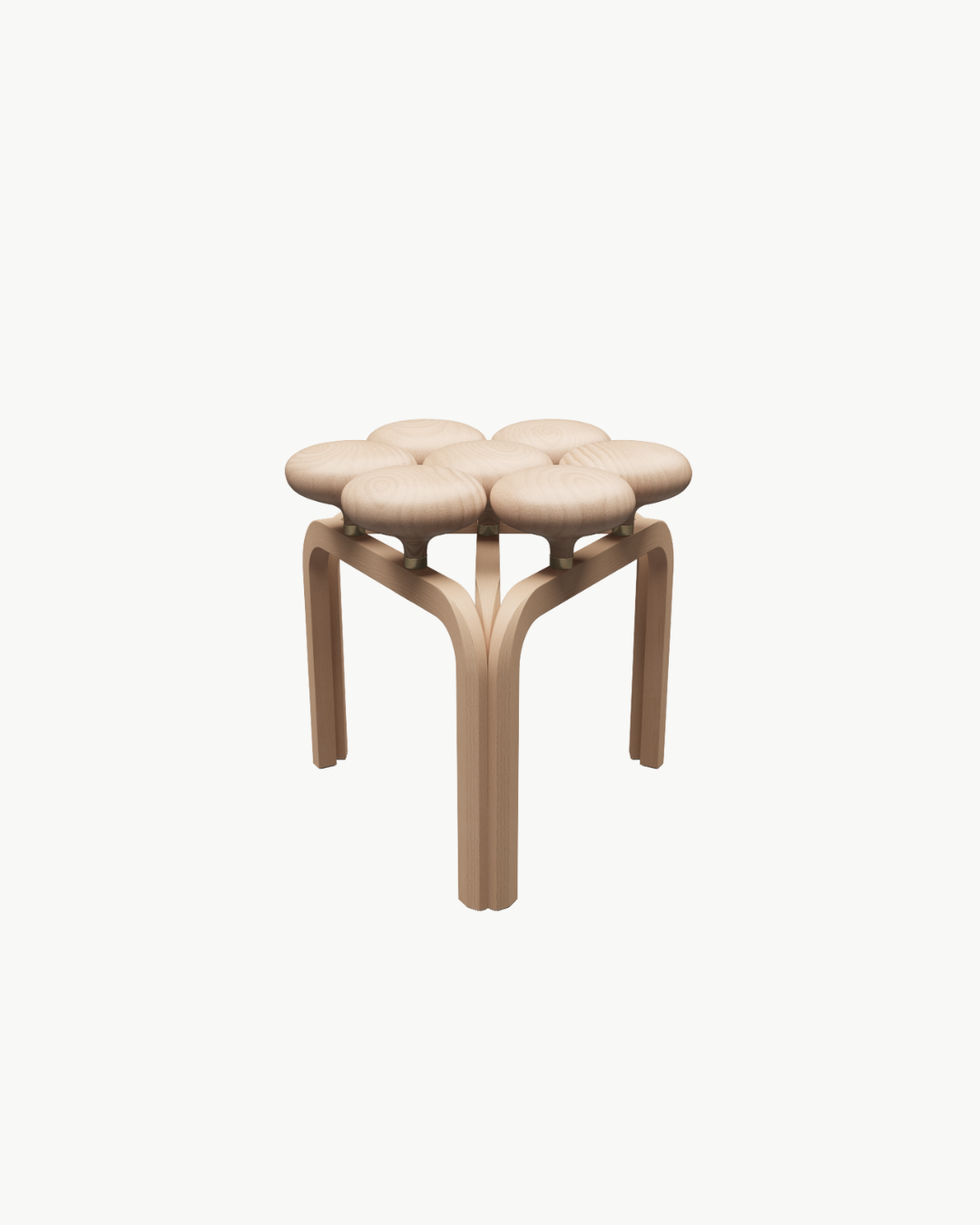 Krakkens konstruksjon er utført i massiv bøketre og bøketrefiner, behandlet med olje for å fremheve treets naturlige struktur og varme. De subtile messingdetaljene tilfører et eksklusivt preg og løfter designet ytterligere. Med sitt lekne og iøynefallende formspråk er Utzon Stool et møbel som fungerer like godt som et funksjonelt sittemøbel som et skulpturelt innslag i rommet.