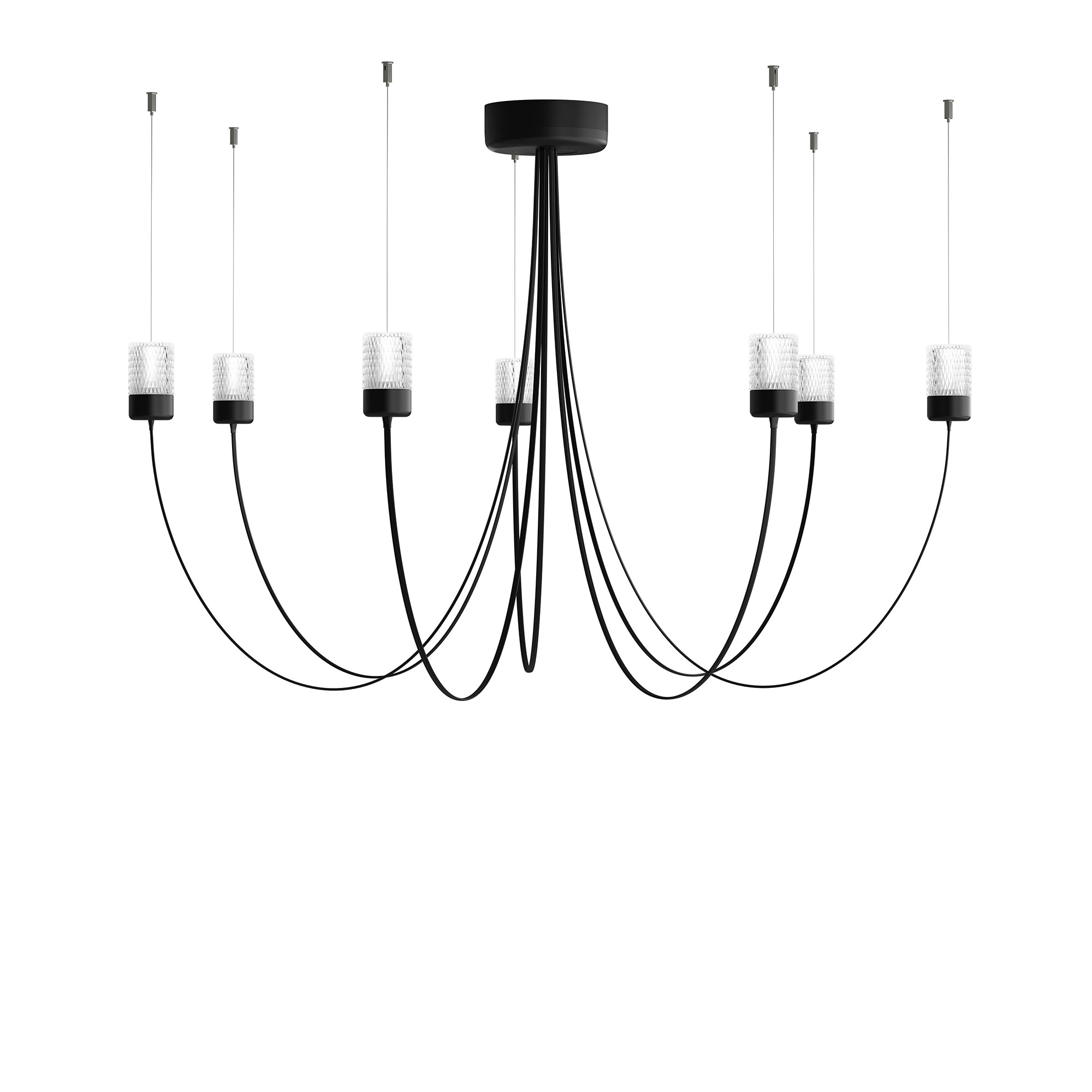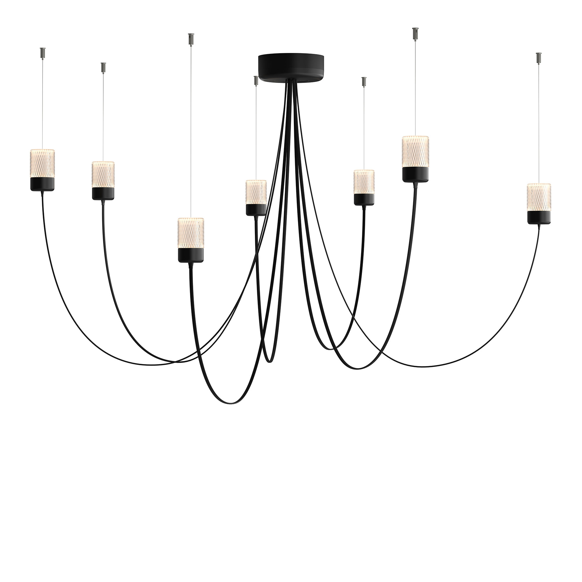 Gravity Chandelier 7, designet av den britiske designeren Paul Cocksedge, er en taklysekrone fra Moooi. Lampen har integrert LED-belysning og finnes i to ulike design, enten med fem eller syv armer. Takket være de fleksible armene kan du selv velge diameter på lysekronen og hvordan lyset beveger seg. Lampen er laget med en metallramme hvor du ytterst på hver arm finner glasskupler i fasettert glass som sprer et behagelig og glitrende lys. En av lampens viktigste komponenter er den vevde elektriske kontakten, som tok år å utvikle.