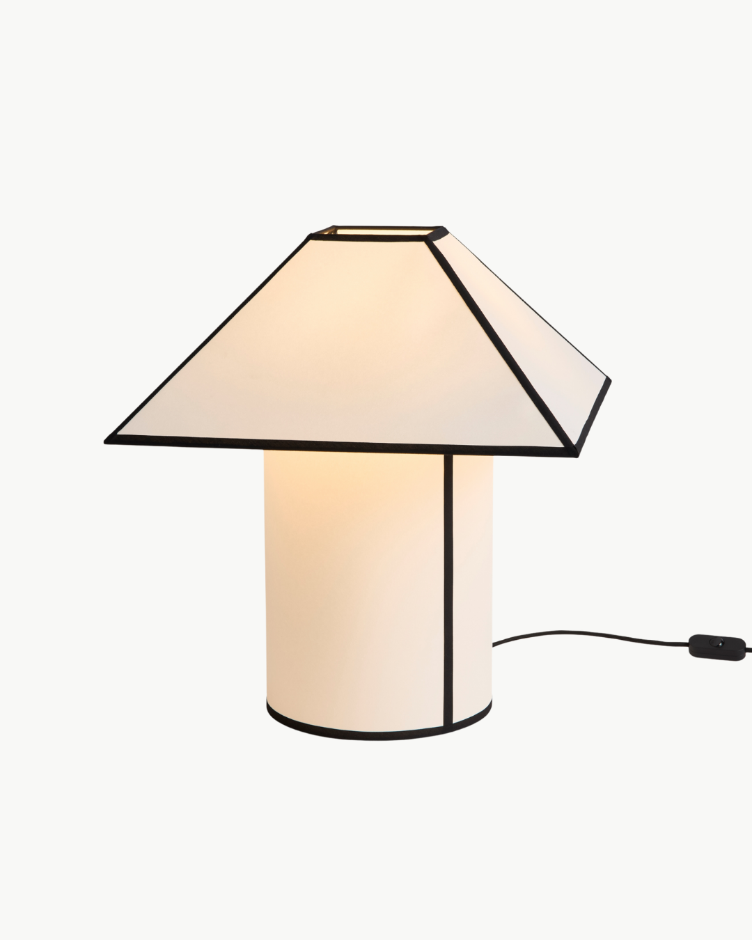 Designet for HAY av Ana Kraš, kombinerer Ava Pyramid Bordlampe en klassisk lampesilhuett med et dristig og grafisk uttrykk – en moderne tolkning av den tidløse bordlampen. Lampen er laget av ECOPET™, fremstilt av resirkulert PET-plast, som gir både skjerm og fot en semitransparent og teksturert overflate. Kontrasterende stoffkant gir designet et særpreget og elegant preg.
