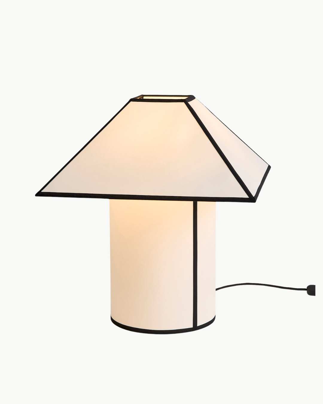 Designet for HAY av Ana Kraš, Ava Pyramid Table Lamp kombinerer en arketypisk lampeskjerm med et dristig, grafisk uttrykk, og gir en moderne vri på den klassiske bordlampen.