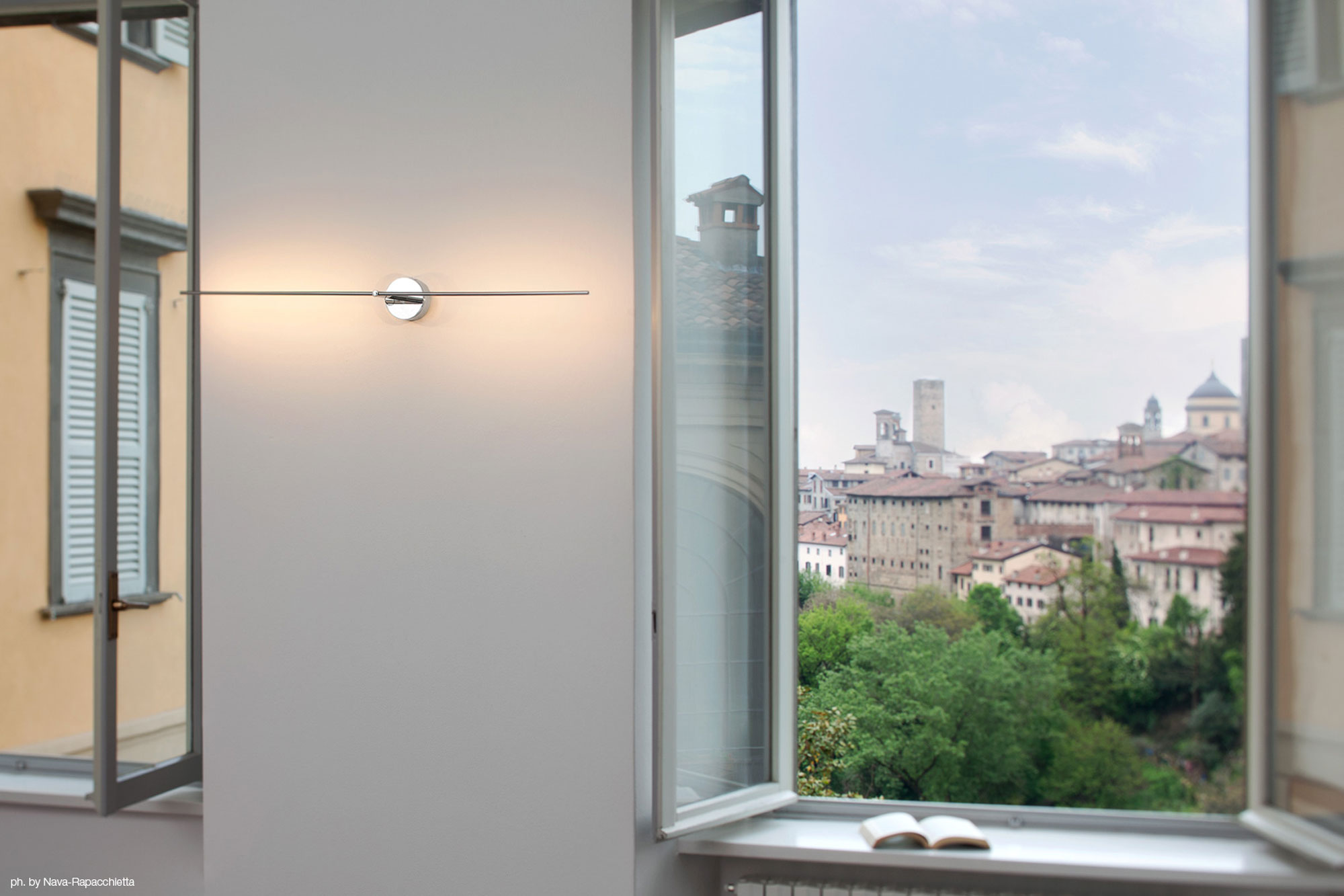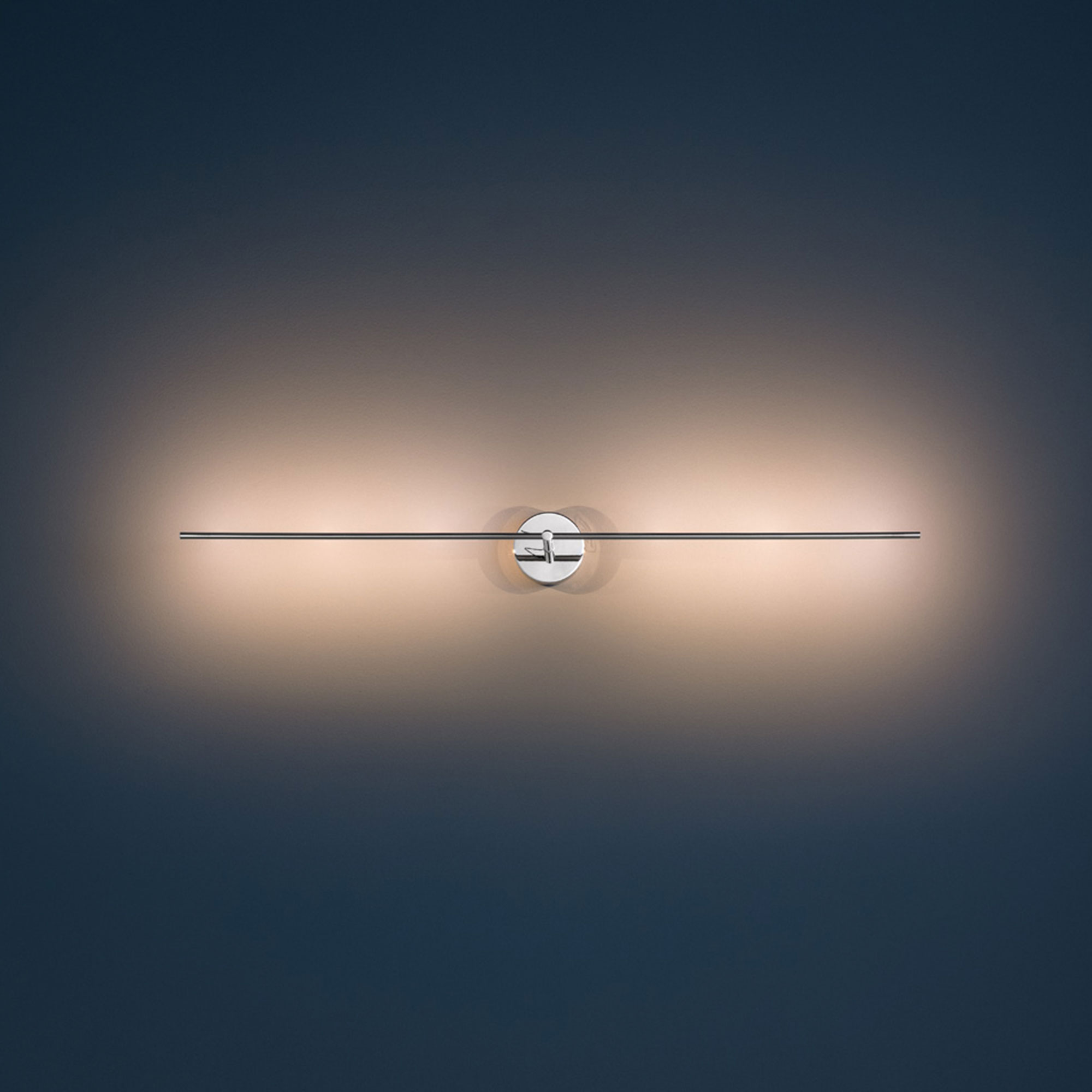 Vegglampen Light Stick av Catellani Smith er designet av merkets grunnlegger Enzo Catellani, og i samme serie er det også en gulvlampe og en bordlampe. Vegglampen Light Stick kommer i tre ulike størrelser, samtlige er produsert i nikkelbelagt metall og kobber. På den tynne kroppen sitter det små LED-pærer som sprer et diffust og bredt lys på veggen. Lampen passer godt alene, men den er også praktisk å plassere på rekke sammen med flere. Takket være den fleksible størrelsen kan den enkelt brukes der det er begrenset plass. Plasser vegglampen Light Stick horisontalt eller vertikalt. Noe som går igjen i Catellanis design er at lampenes lys spiller en like stor rolle som lampens design. Light Stick er intet unntak. Ideen bak Light Stick-serien var å lage en lampe som var nesten usynlig og hvor lyset er helt i fokus.