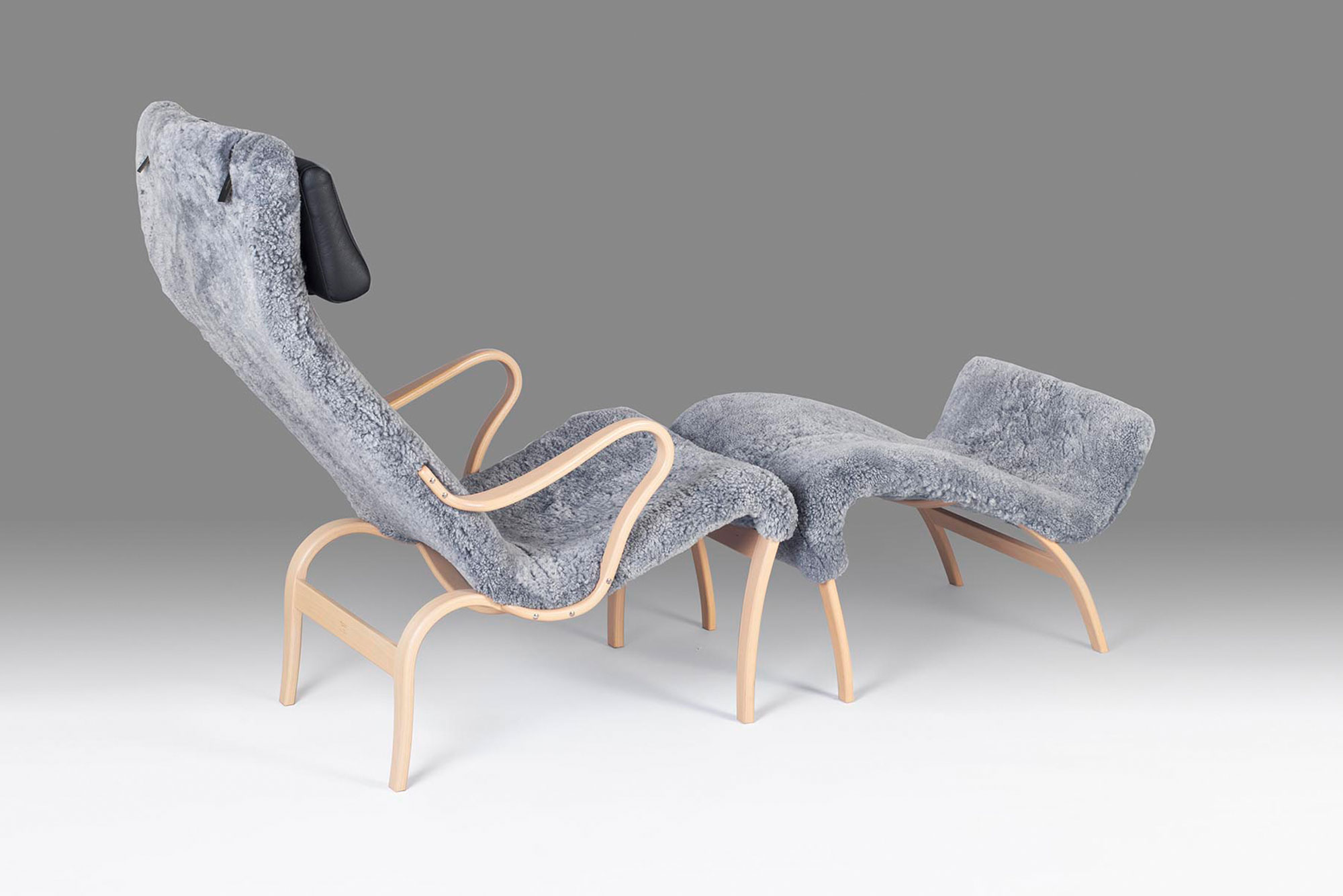 Lenestolen Mi 427 Miranda, designet av Bruno Mathsson i 1941, kommer med en skulpturert konstruksjon av fleksibel og limt bøk. Denne kan igjen trekkes med enten hjemmekoselig tekstil, behagelig saueskinn eller eksklusivt Elmosoft-skinn. Uansett hvilket møbeltrekk du ser etter, gir lenestolen Miranda deg ekstra komfort med nakkeputen trukket med skinn. Hvis du vil ta komforten enda et skritt videre, kan du gjerne kombinere den med den matchende fotskammelen Mi 431 Mifot, som er tilpasset formen på Mi 427 Miranda lenestol. >>