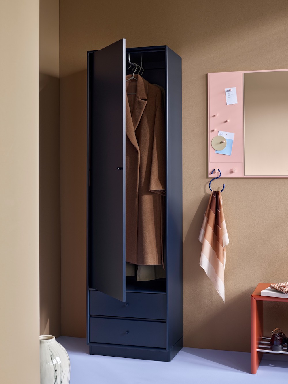 Skapet leveres i hele 41 lakkerte farger fra Montana, slik at du kan tilpasse garderoben etter din stil og ditt interiør. Velg mellom nøytrale toner for et tidløst uttrykk, eller la garderoben bli et fargerikt statement i hjemmet.