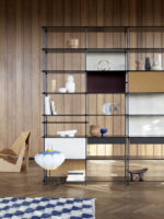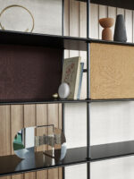 For ekstra funksjon og uttrykk kan du legge til de fleksible tekstilpanelene. Disse gir et mykere preg, tilfører farge og gjør det mulig å variere graden av åpenhet og gjennomsiktighet i hyllesystemet.