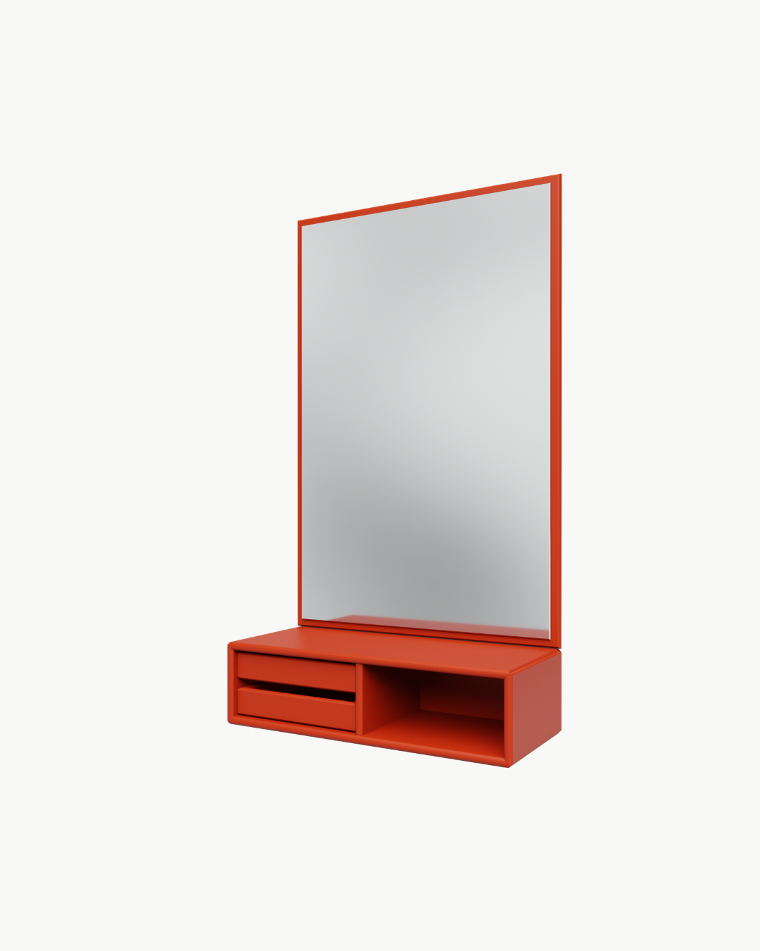 Montana Glance speil med hyllemodul er en funksjonell og stilren løsning som kombinerer speil og oppbevaring i ett og samme møbel. Med integrert hylle og to uttakbare brett får du en praktisk plass til småting som nøkler, smykker, solbriller eller andre hverdagsartikler.