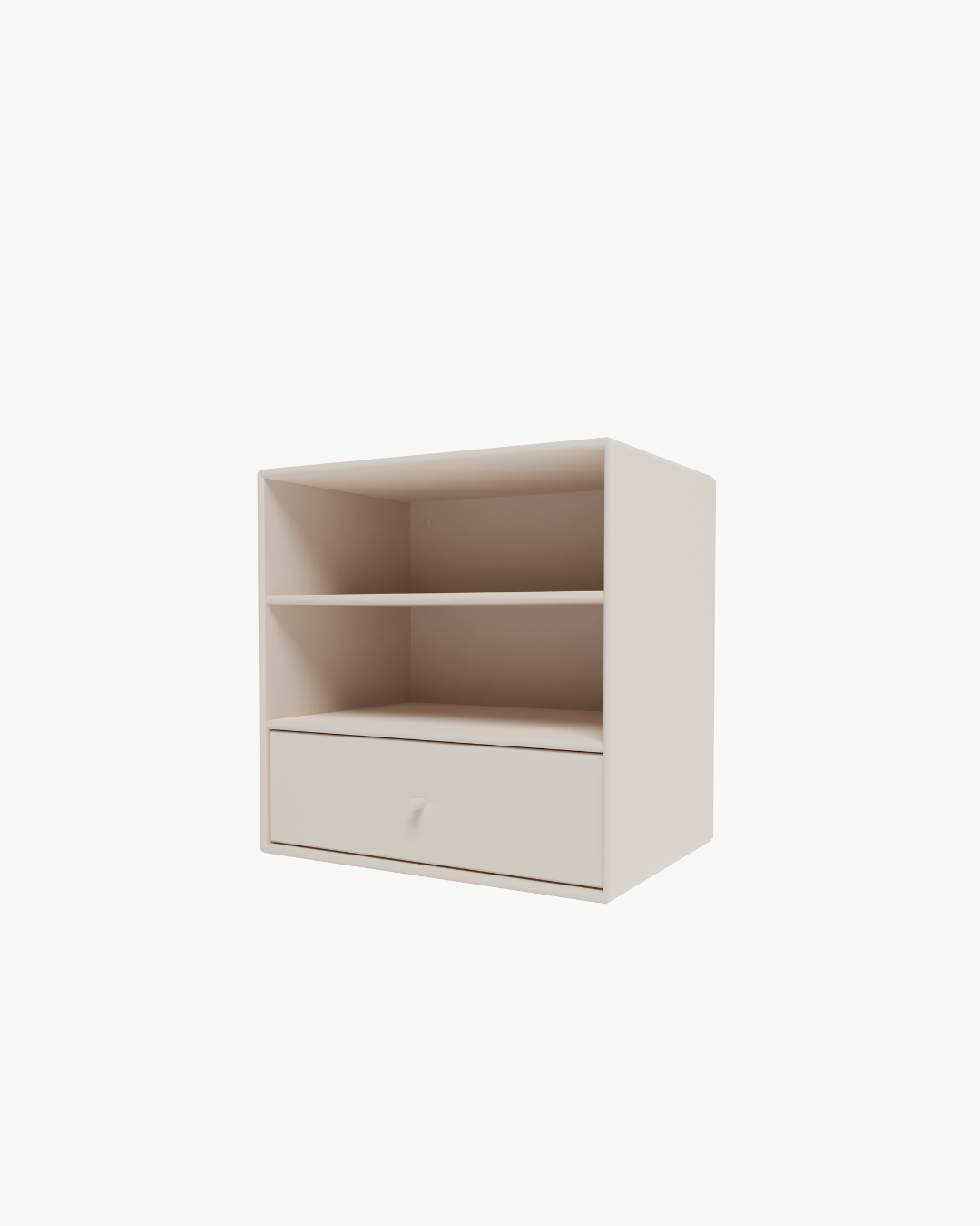 Skuffebakken er hvit med front lakkert i samme farge som modulen, noe som gir et helhetlig og stilrent design. Montana Mini-serien er tilgjengelig i 10 vakre, vannbaserte lakkfarger, slik at du kan finne den perfekte matchen til ditt interiør.