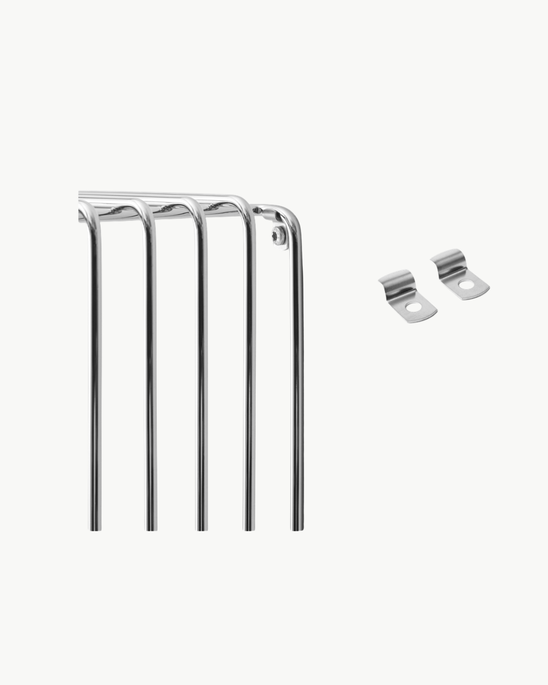 Gi din Panton Wire-hylle et svevende uttrykk med dette settet på 2 opphengsskinner som lar deg henge hyllen trygt og stilig på veggen. Opphengsskinnen er designet for å passe perfekt til Panton Wire-modulene, og gir et rent og moderne utseende som fremhever hyllens ikoniske design.