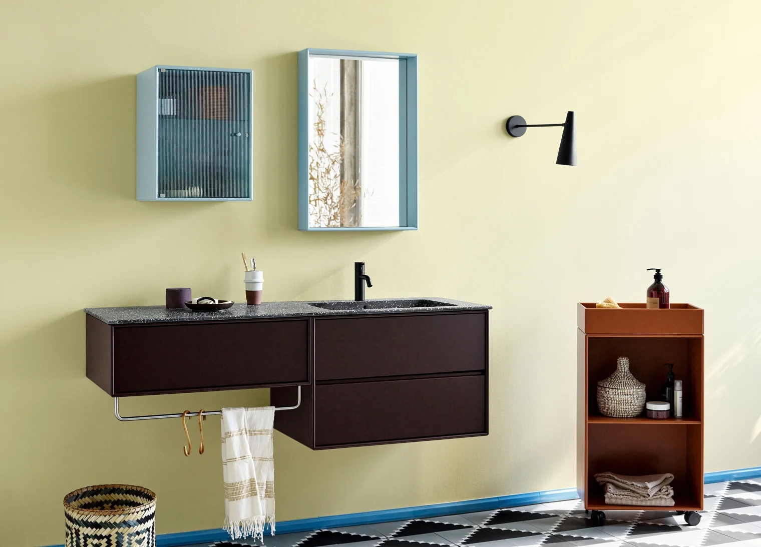 Trallen leveres i Montanas poetiske fargepalett med 41 nyanser og måler H86,9 x B46,8 x D30 cm.