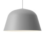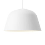 Muuto. Ambit pendel Ø55cm – AMBIT er en tidløs og allsidig pendel med sterk karakter. Lampeskjermen er laget av gamle tradisjoner, trykker spunnet for hånd, polert, og til slutt håndmalt. AMBIT pendel kommer i 6 forskjellige farger og har en hvitmalt innvendig som gir en delikat kontrast og samtidig sikre at maksimal lys avgis fra lampen. MATERIALE OG OMSORG Materiale: Aluminium lampeskjerm og gummi ledningen Lyspære ikke inkludert.