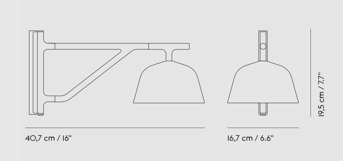 Ambit-vegglampen er designet med et stille, moderne uttrykk og subtile detaljer. Endre uttrykket for Ambit-vegglampen til ditt personlige behov gjennom den roterende armen og lampehodet, noe som gir et raffinert lys til ethvert soverom, kjøkken eller gang. Armene til Ambit-vegglampen kan justeres rundt en akse på 120 grader fra veggbraketten. Lampeskjermen til Ambit-vegglampen kan vendes 60 grader til hver side, slik at brukeren kan velge mellom både direkte og indirekte lys