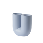 Kink Vasen bringer en moderne form til den arketypiske blomstervasen gjennom en kombinasjon av tradisjonelt håndverk og lekent designspråk. Med sin doble åpning tilfører Kink Vasen rommet en skulpturell følelse, selv når den ikke er i bruk. Designet er laget i porselen som er glassert på innsiden for en raffinert berøring.