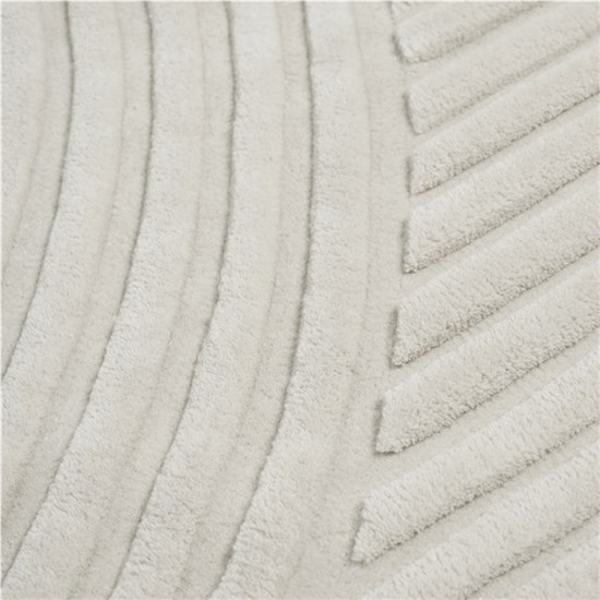 Relevo er et mykt teppe med en utpreget skulpturell kvalitet. Det slående grafiske mønsteret er produsert ved å trimme den tuftede ullen i forskjellige nivåer, og skaper dermed et iøynefallende skyggespill som gir en følelse av å være tofarget i stedet for monokrom. Teppets enkelt avrundede hjørne gir det en unik karakter, et dynamisk uttrykk i enhver setting.
