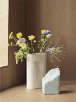Ridge Vase presenterer en ny måte å vise blomster gjennom sitt skulpturelle uttrykk sammen med en kunstnerisk karakter når de ikke er i bruk. Designet har ekstra funksjonalitet gjennom sin raffinerte bukke, slik at blomster kan stå stående mens de også fungerer som et subtilt håndtak når du flytter vasen fra et rom til et annet.