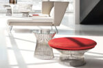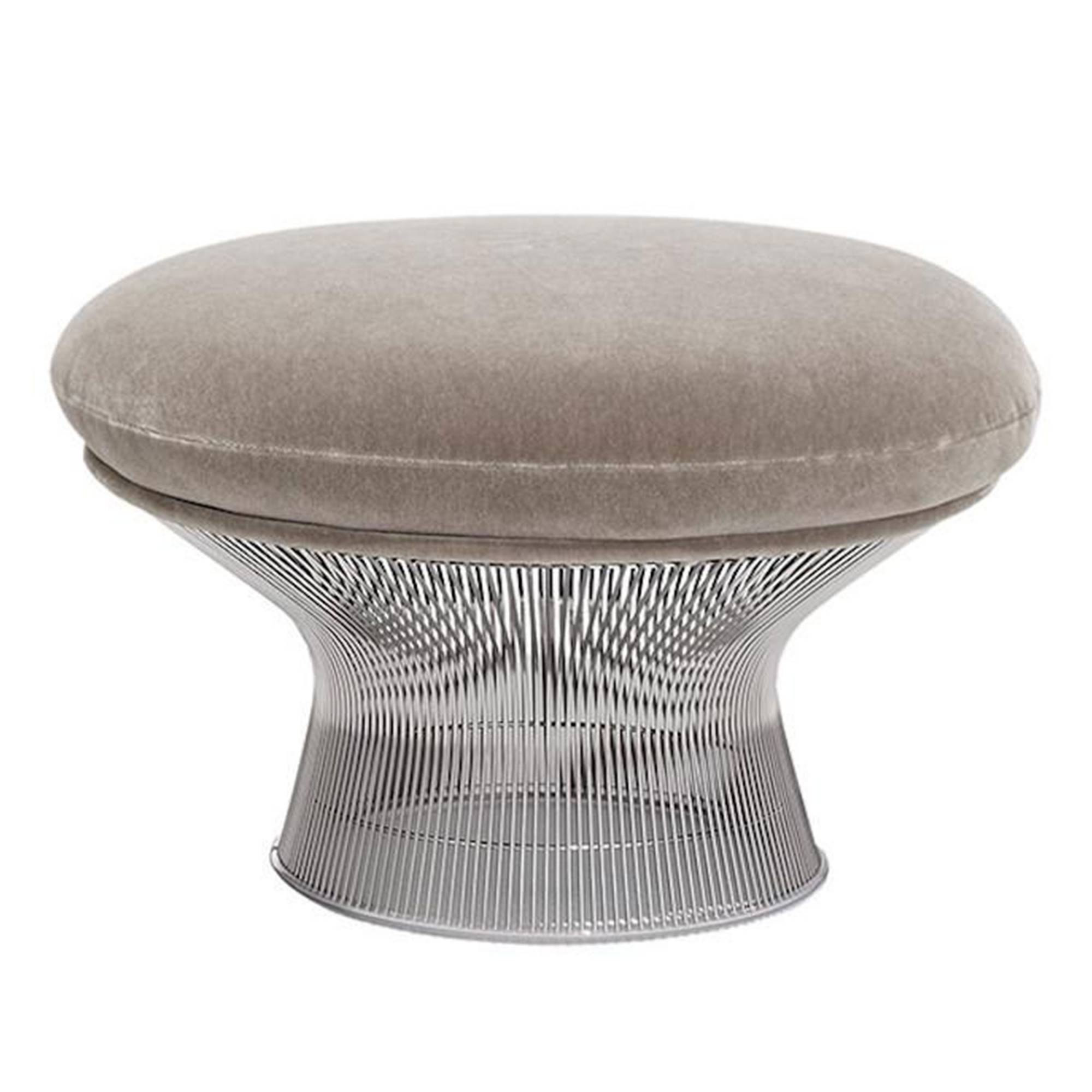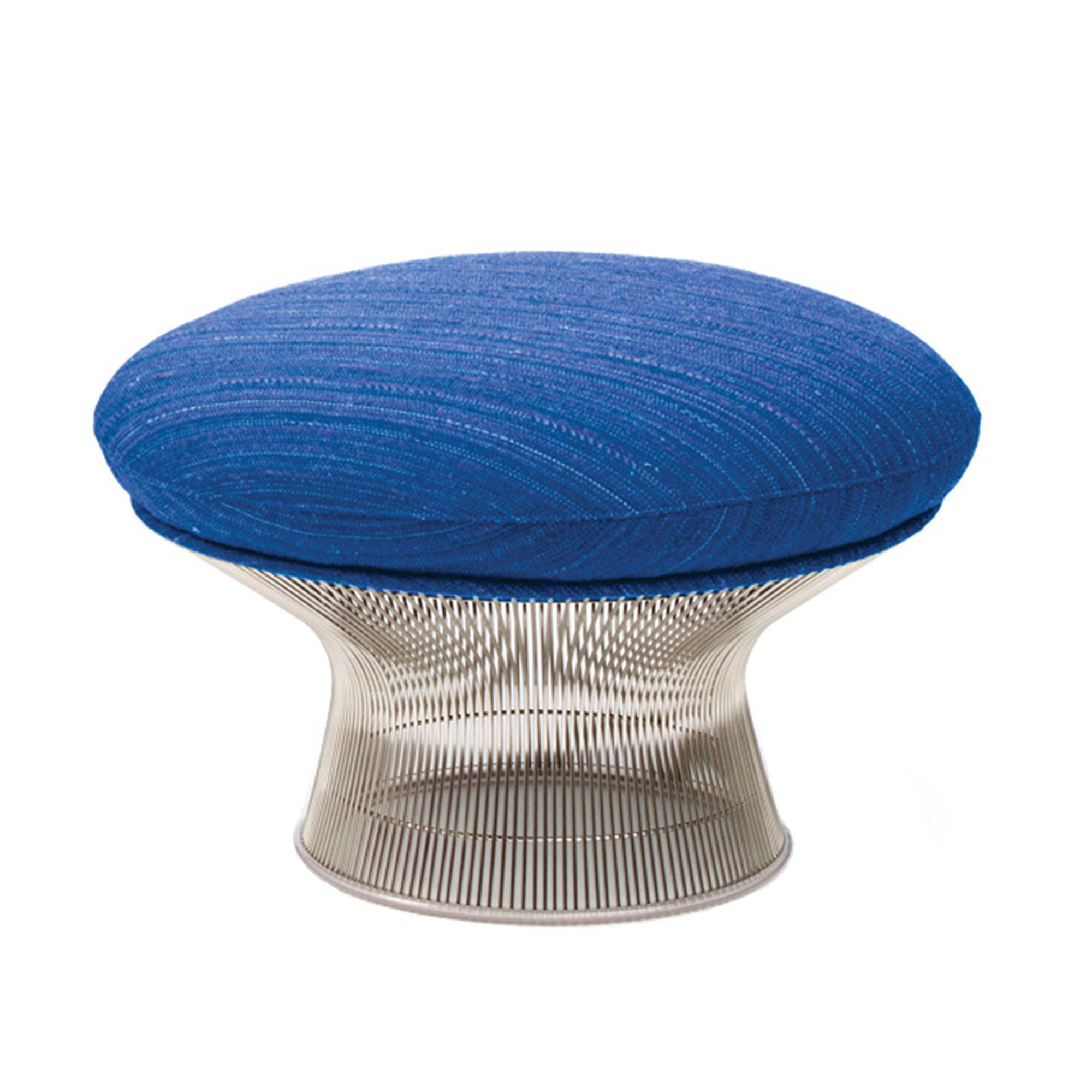 Her er en fotskammel fra Platner-kolleksjonen, designet for å utfylle Platner Easy Chair. Platner-kolleksjonen ble designet av Warren Platner for Knoll i 1962 og er en samling elegante møbler, laget av sammensveisede stålstenger som skaper en unik moaré-effekt. Den forgylte versjonen av serien ble introdusert i 2015 for å feire Platners 50-årsjubileum. Alle metallkomponenter er overflatebehandlet med nikkel og et gjennomsiktig, beskyttende lakklag. Skammelen har et skall som er laget av støpt glassfiber og mykt skum. Trekket er tilgjengelig i de fleste farger. Sammen med Platner Easy Chair dannes et elegant sitteområde.