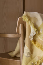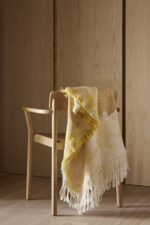 Heritage-pleddet i varme og solrike gulfarger gir et mykt, lyst og optimistisk uttrykk til rommet. Vevd i 100 % lett og myk ull på Grinakervev – behagelig, delikat og helt uten kløe.