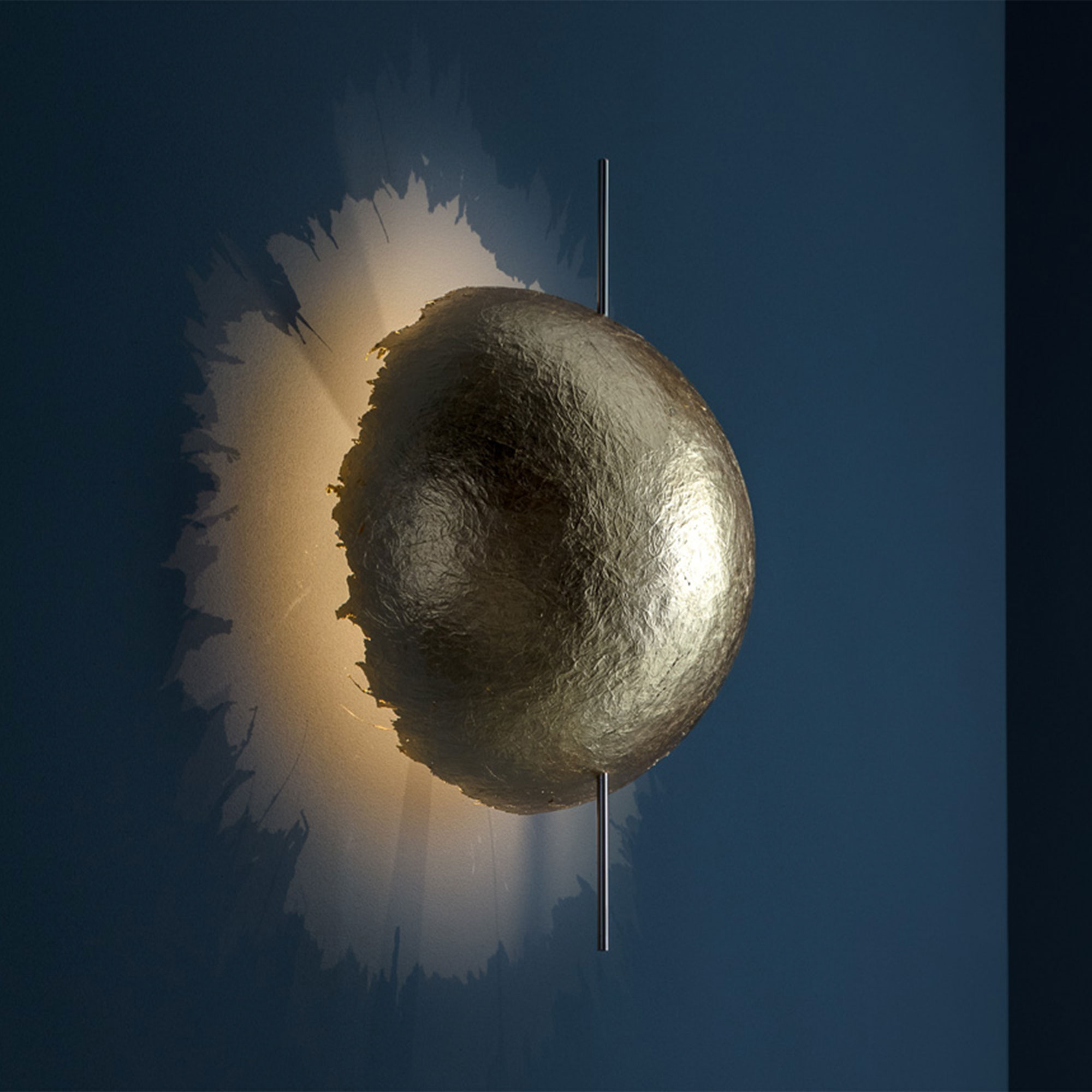 Vegglampen PostKrisi 40 er en del av serien PostKrisii som ble designet i 2004 av Enzo Catellani for hans merke Catellani & Smith. Lampen er laget av en halvkule laget av glassfiber og har rå kanter. Kombinasjonen av materialet og kantene gjør at lyset og skyggene sprer seg på en effektfull måte mot veggen. Den malte glassfiberens struktur i kombinasjon med skyggene den lager gjør vegglampen PostKrisi 40 til et kunstverk i seg selv. Plasser den gjerne i stuen eller andre steder der den får den oppmerksomheten den fortjener.