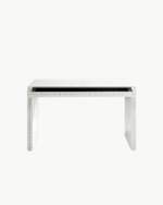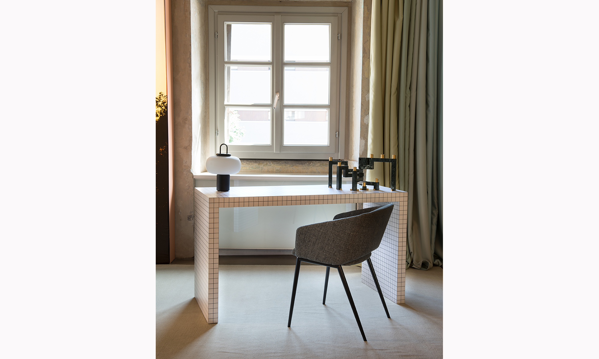 Quaderna 2750 er både et skrivende skrivebord og et kunstobjekt, ideelt for kreative hjemmekontorer, designstudier eller sofistikerte arbeidsrom. Den enkle, skjulte oppbevaringen gir et ryddig arbeidsområde, samtidig som det sterke grafiske elementet gjør bordet til et blikkfang.