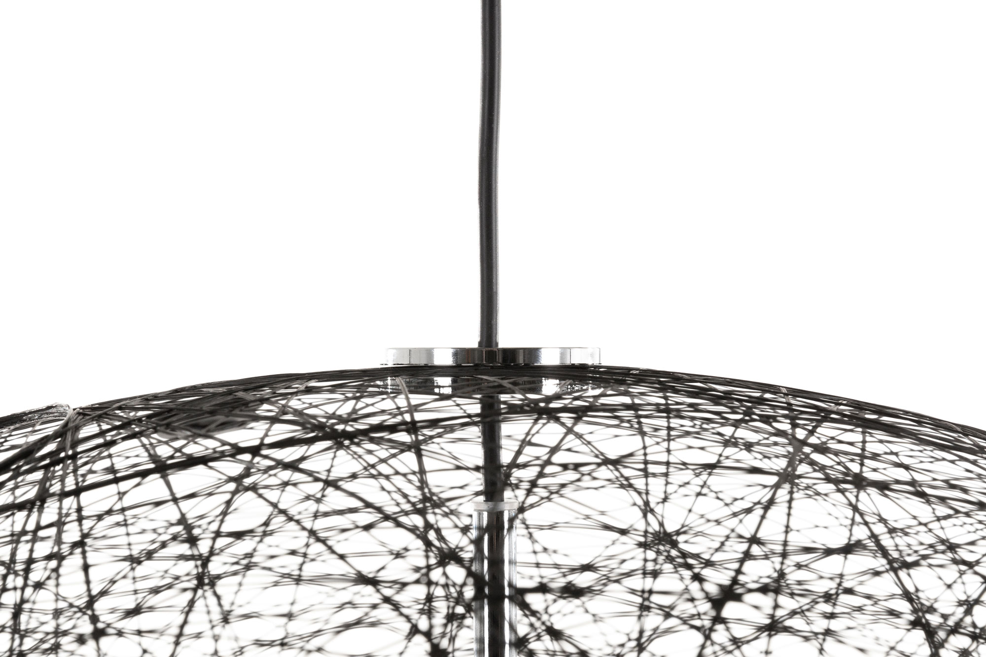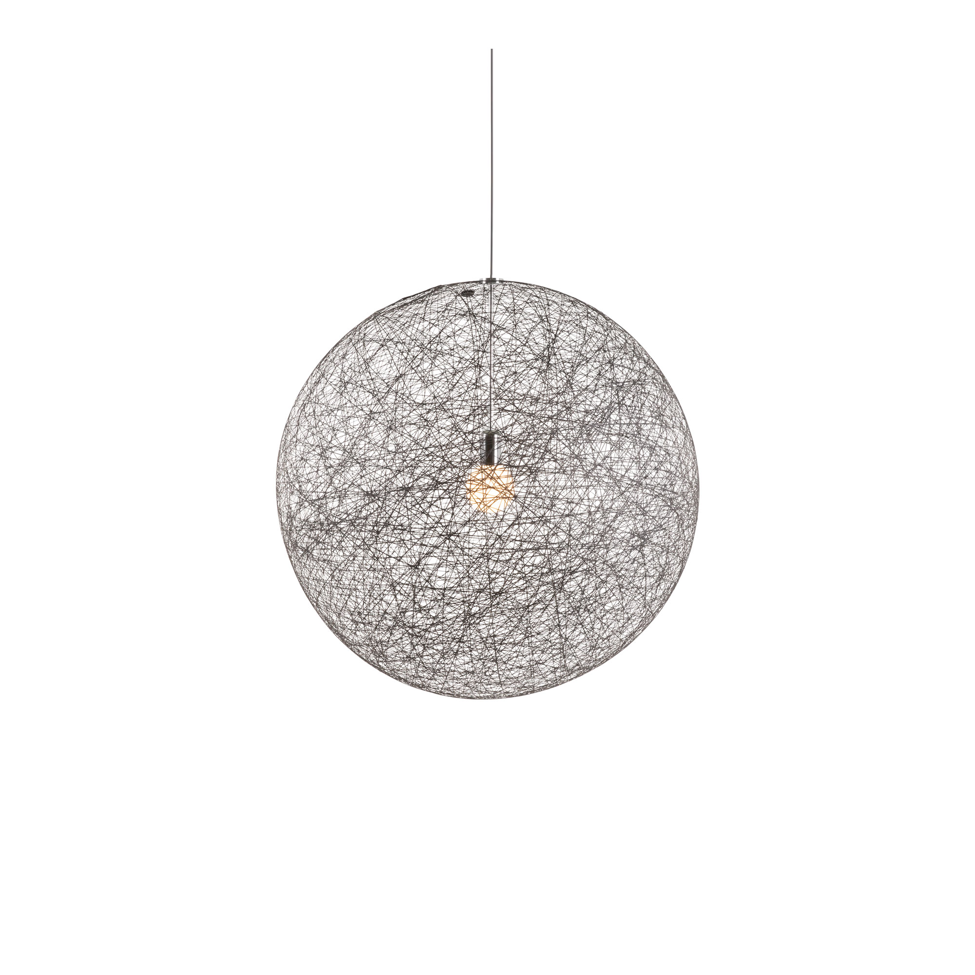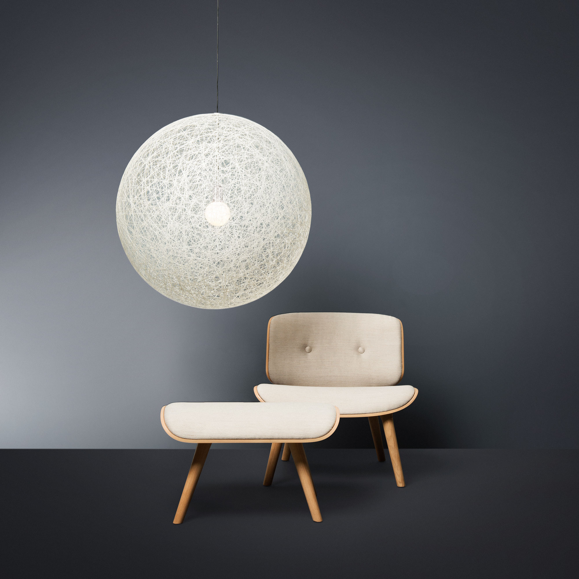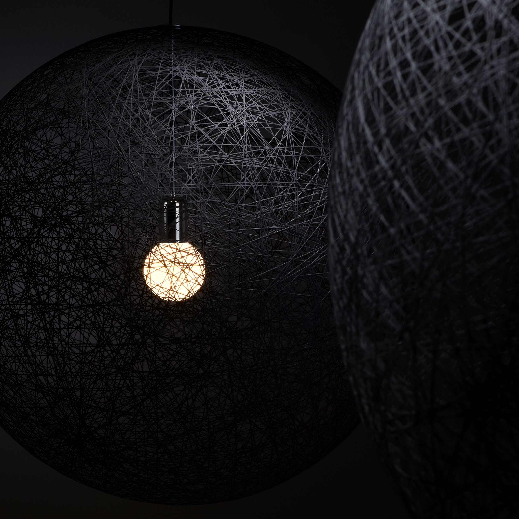 Her ser du den mellomstore lampen Random Light II Medium fra Bertjan Pots populære serie av pendler for nederlandske Moooi. Pendelen kan kjøpes i enten hvit eller svart, og som standard har den 4 meter lang ledning. Vi tilbyr også ledning på 10 meter. Kontakt kundeservice for informasjon om pris og hjelp med bestillingen din, dersom dette er av interesse. Dette gjør at du kan skape en fin oase av lys i rommet ved hjelp av pendler i forskjellige nivåer og størrelser. Hos oss kan du nemlig også kjøpe Random Light II i størrelsene Small og Large. Bertjan Pot designet den originale versjonen av Random Light så tidlig som i 2001 samme år som merket Moooi ble grunnlagt. Etter flere eksperimenter i en periode på tre år lyktes designeren med å forfine hver eneste detalj, og pendelen ble en del av sortimentet. Lampen ble raskt et av Mooois mest populære produkter. Nå nesten 20 år senere har de ferdigstilt Random Light II med en ny design som forenkler monteringen og lyskildens sentrerte posisjon.
