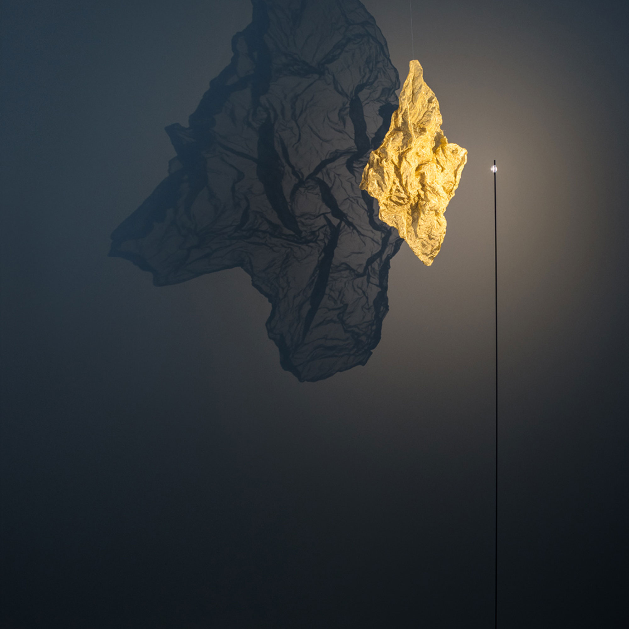 Shadow er en gulvlampe fra Catellani & Smith som er en del av Oggetti senza Tempo-serien. Kolleksjonen er en samling av Enzo Catellanis tidlige og fremtidige design, utviklet for den enkle gleden av å produsere noe mer enn en lampe. Shadow er laget av en matt svart kobberstang som lyser opp et stykke metallduk i messing som, som navnet antyder, skaper en skygge mot veggen. Lampen kan dimmes og stoffet kan formes fritt etter ønsket resultat. Shadow bør plasseres mot en tom vegg for best effekt, og lampen kan nesten ligne en kunstinstallasjon i seg selv. Eksklusivt produsert for hånd i Italia, like ved elven Serio i traktene rundt Bergamo.