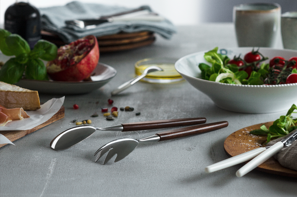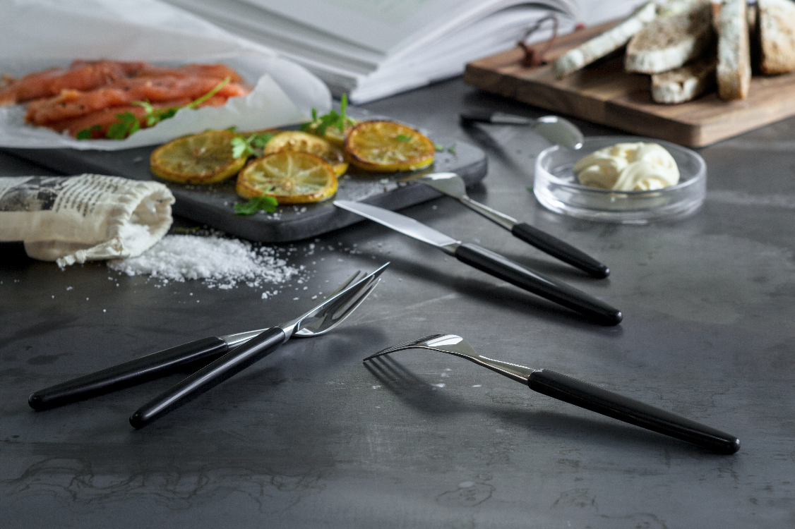 Skaugums design fra 1946 legger vekt på at bestikket både skal være godt å spise med og å holde i hånden. Det håndsmidde bestikket kommer i tre farger med plastskaft samt to versjoner med treskaft. Dette var opprinnelig i teak og palisander, men palisander ble senere erstattet med Kebony, et spesialbehandlet norsk trevirke.