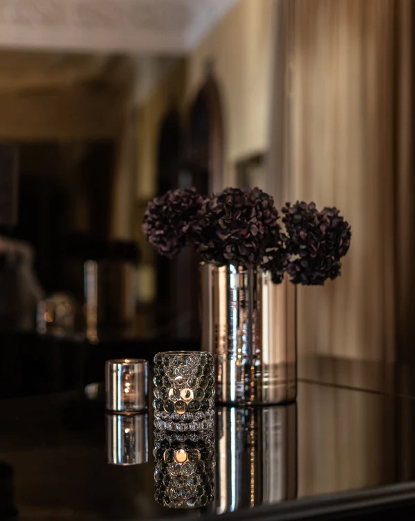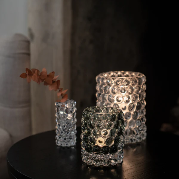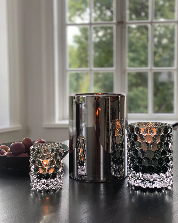 Hurricane Boule er vår mest populære lanterne. Håndblåst på landsbygda i Böhmen, hvor verdens beste glassblåsere finnes. Boblene, laget i en støpejernsform, gir Boule sitt unike optiske mønster og en luksuriøst tung følelse. Det er utrolig vakkert å blande med de metalliske Classic-lyktene.