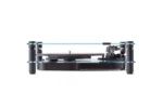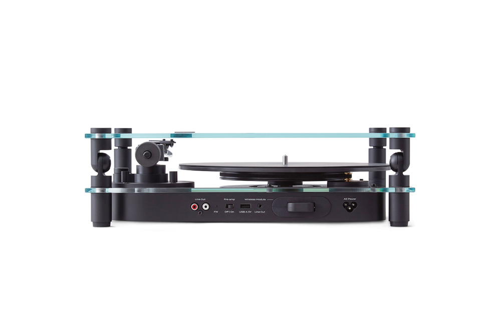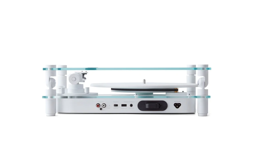 Transparent Turntable er en nytolkning av en klassisk vinylplatespiller, laget for moderne hjem og stadig utviklende teknologi. Den er nøye håndlaget i aluminium og herdet glass. Systemet er beltedrevet, med innebygd phono-stage og en ferdigmontert pickup fra danske Ortofon.